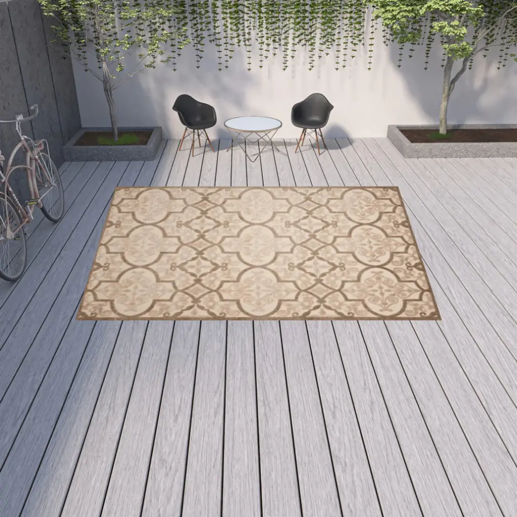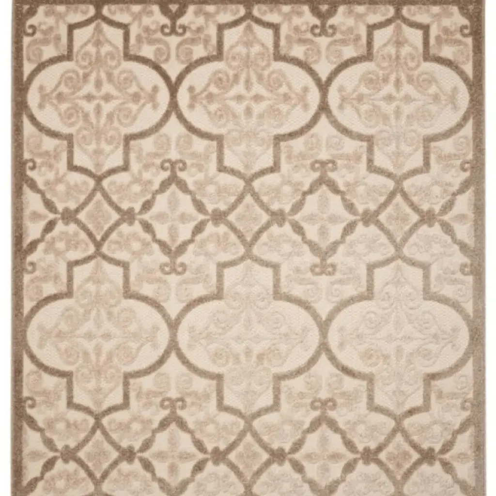 10' X 13' Cream Ikat Non Skid Indoor Outdoor Area Rug
