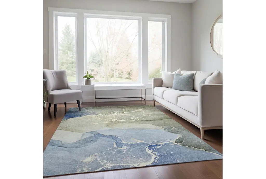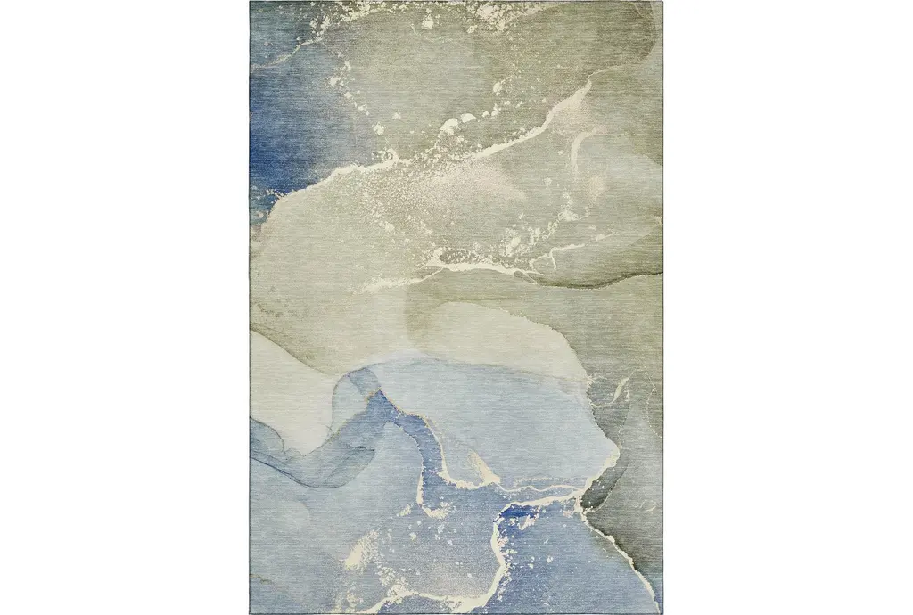 10' X 14' Washable Rug- Odyssey Sky Blue Marble | Machine Washable | Abstract | Tufted | High Traffic | Low Pile | Non Slip | Rectangle