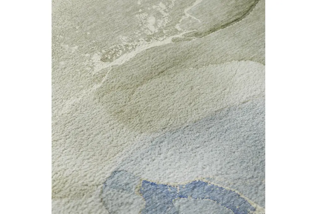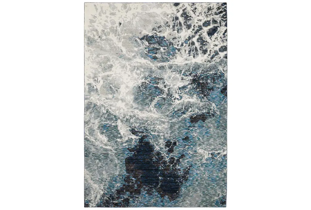 Enhance your living space with the 10' X 14' Rug-Odyssey Washable Sky Blue Marble. This modern, sky-colored rug features alcohol ink inspired designs that bring a distinctive contemporary vibe to any room. Made from luxuriously soft, 100% plush polyester microfiber pile, it offers incredible depth, visual texture, and color movement.