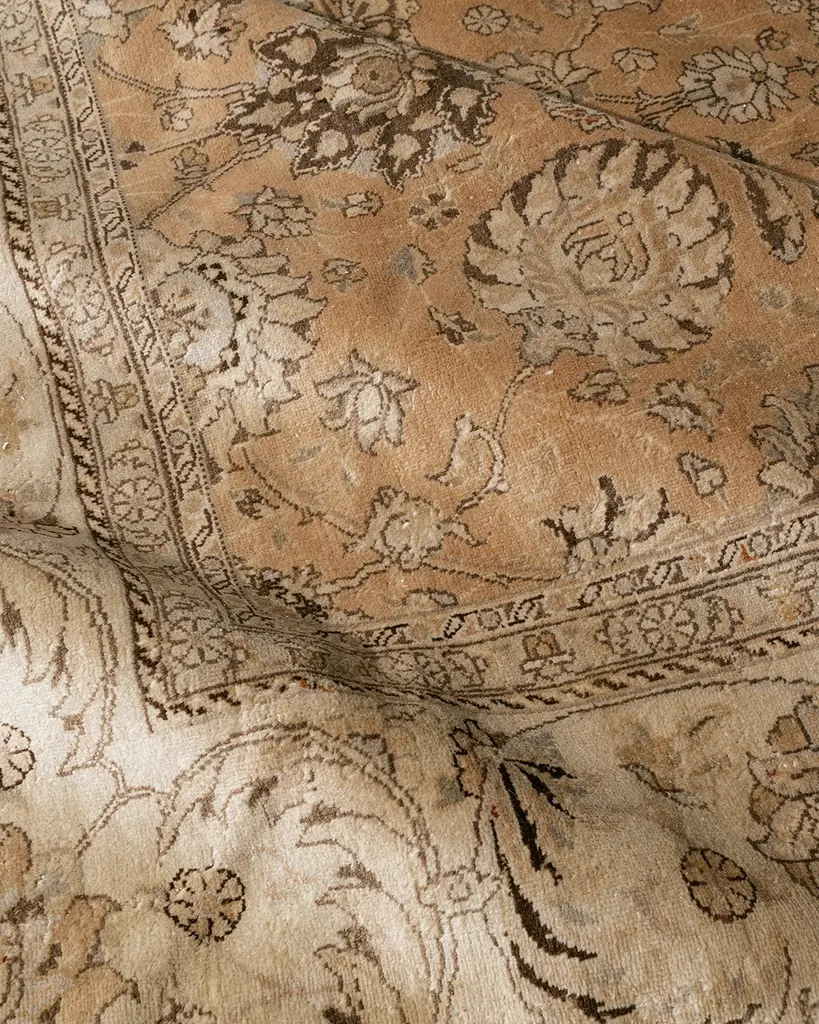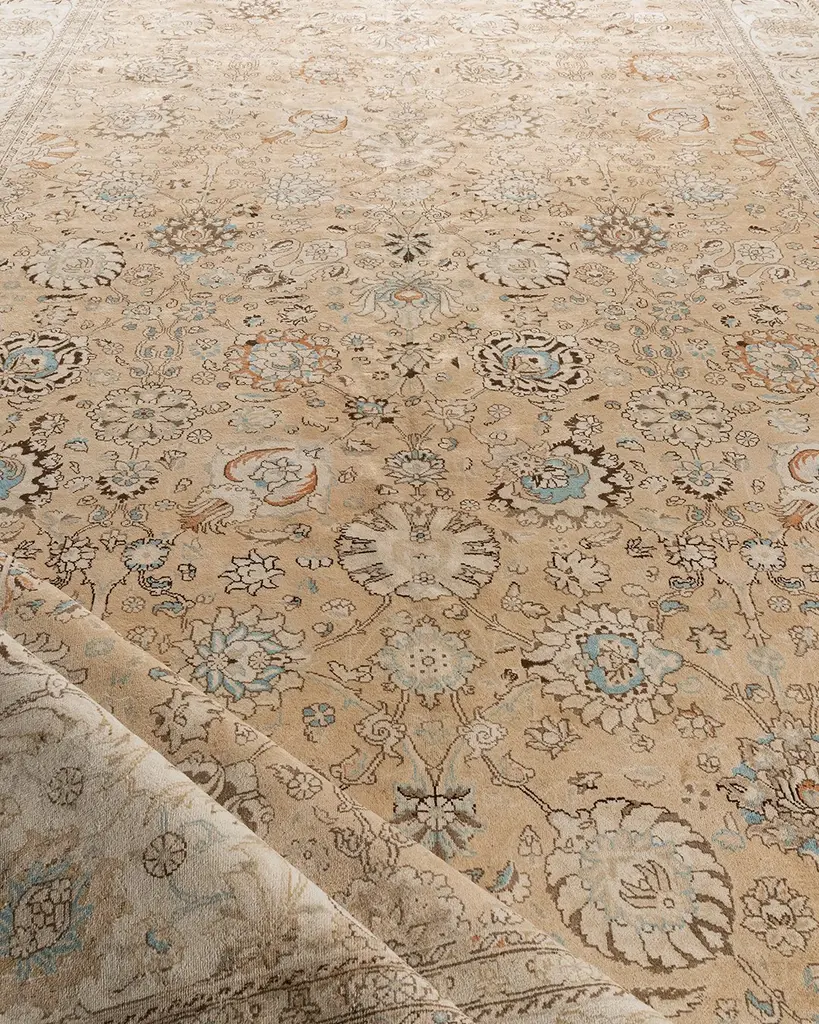 A lovely open field in this 1920's hand woven Persian Tabriz rug.
