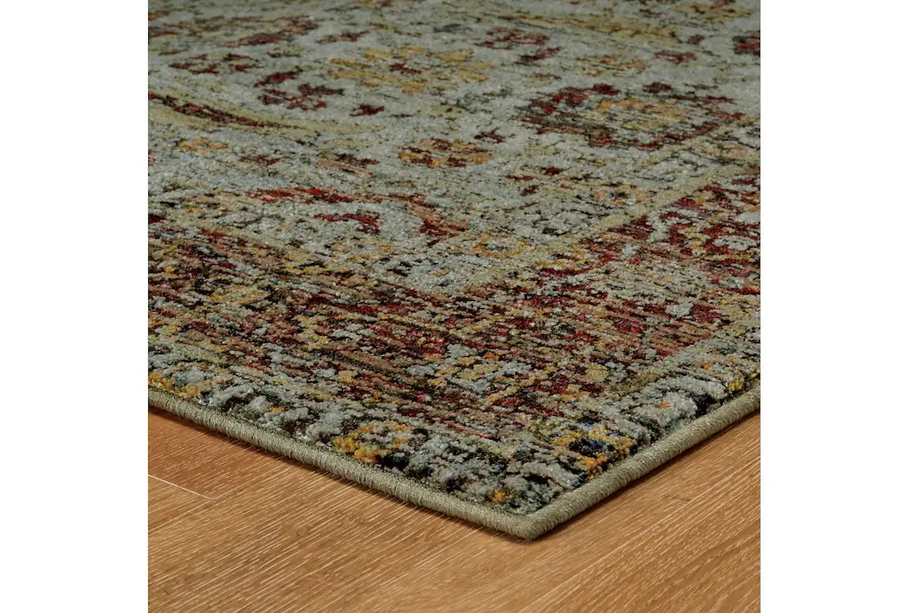This exquisite 10'x13'1" rug in Amal Blue/Spice is made in the USA with traditional style and fiber material, perfect for your dining room. Enjoy the quality and beauty of this indoor rug that adds warmth and elegance to any space.