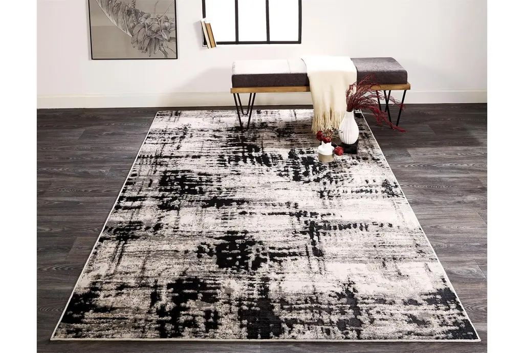 Enhance your living space with the sophisticated style of this 10'x13'1" Rectangle Rug. The traditional design features a striking silver metallic black abstract grid that adds a touch of modern flair to any room. With its low pile, this rug is perfect for high-traffic areas, offering durability and easy maintenance.