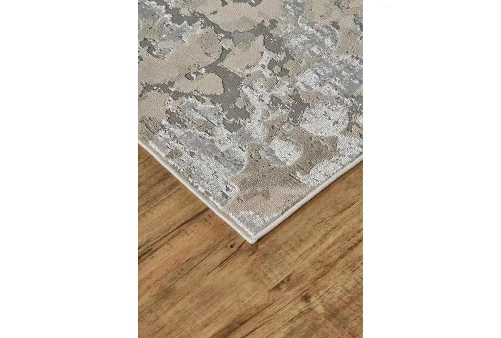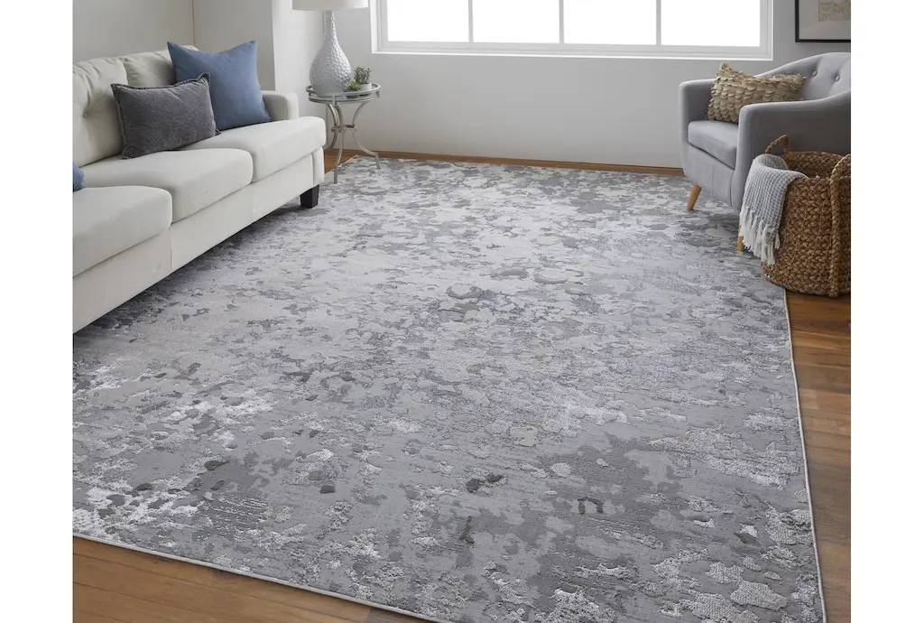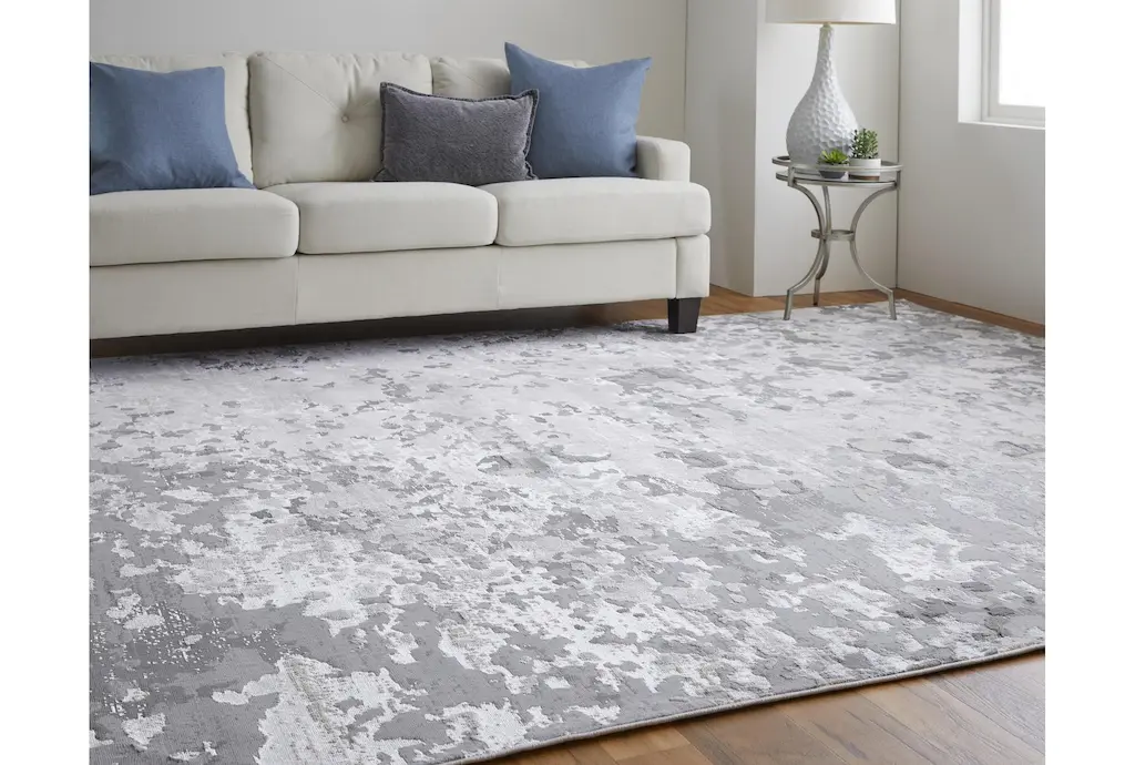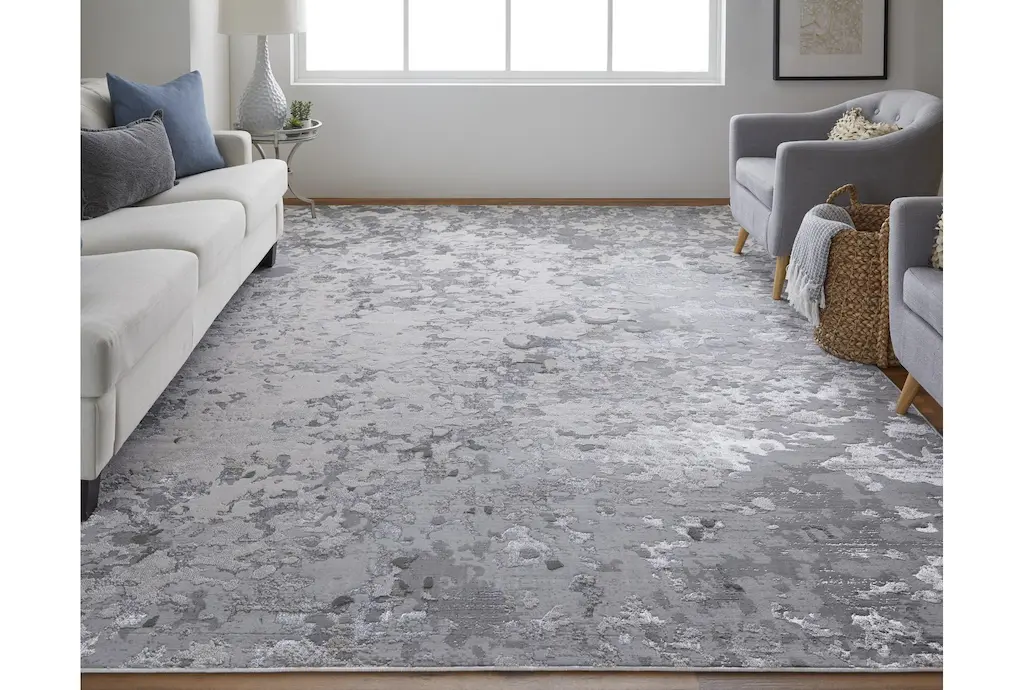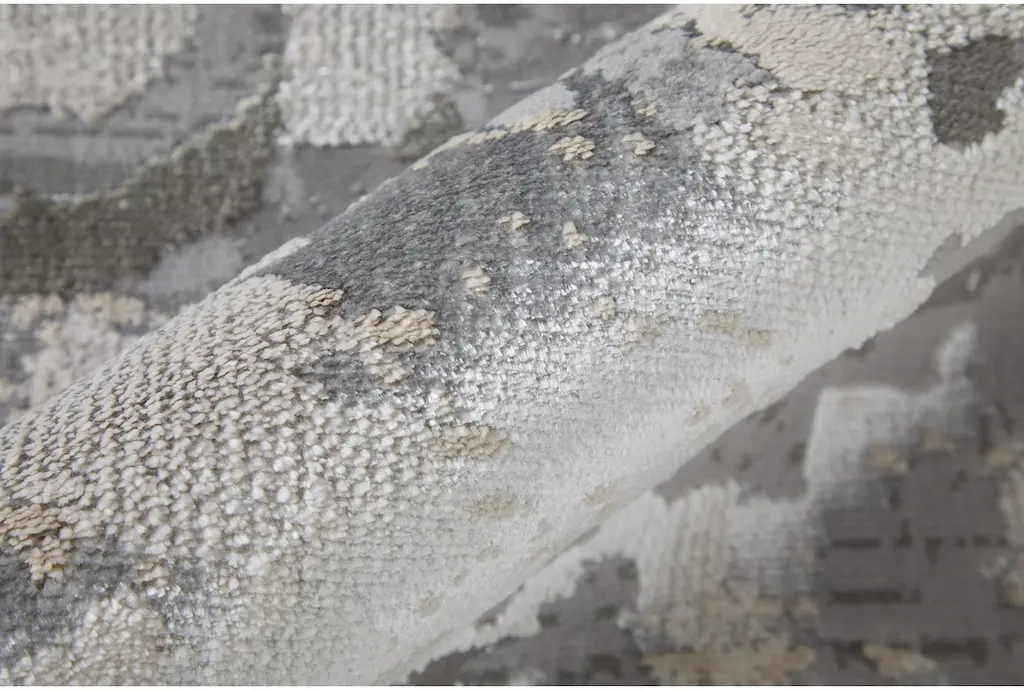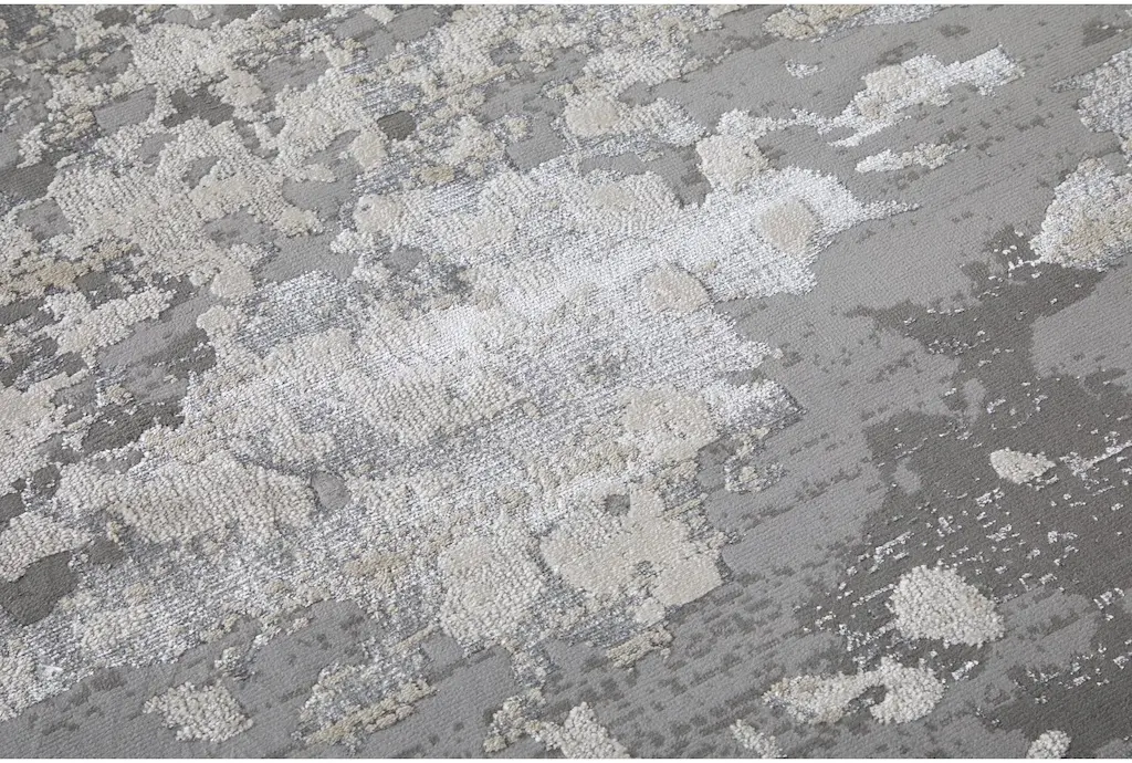 The 10'x13'1" Rectangle Cotton Rug in Silver Metallic Modern Abstract brings a contemporary touch to your home. The soft color palette and acid-washed pattern create a neutral backdrop suitable for a variety of interior settings. Designed for indoor use, this rug's low pile is perfect for high-traffic areas like the living room or bedroom.