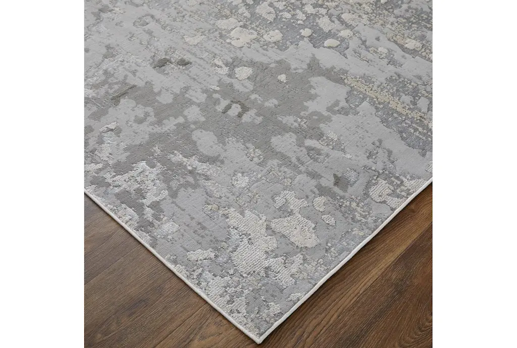 10'x13'1" Rectangle Cotton Rug-Silver Metallic Modern Abstract | Indoor | Low Pile | Layering