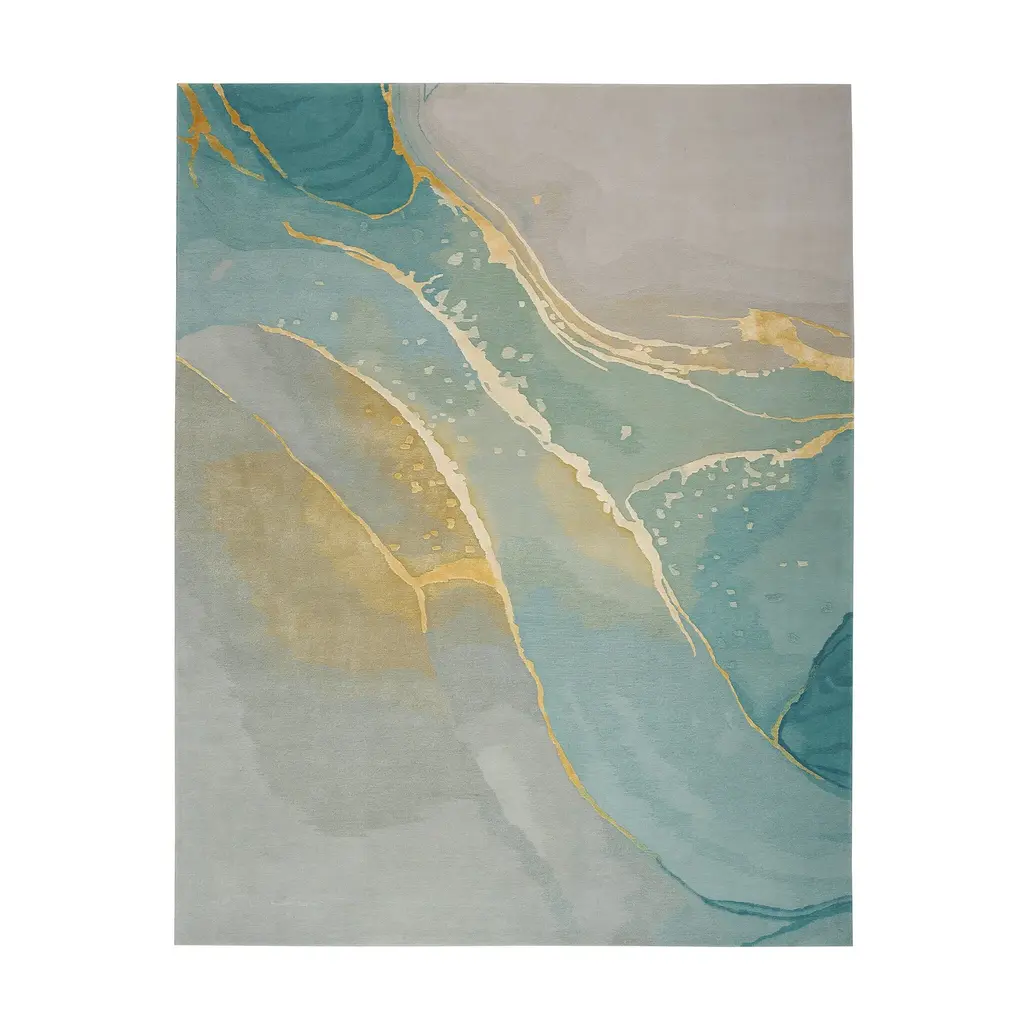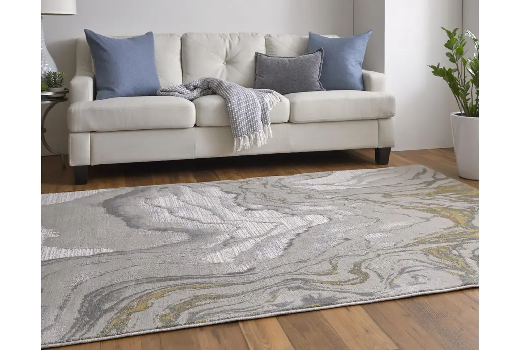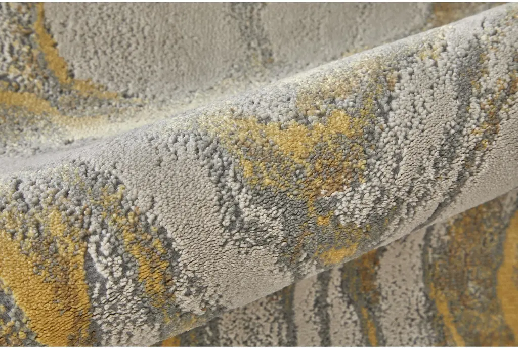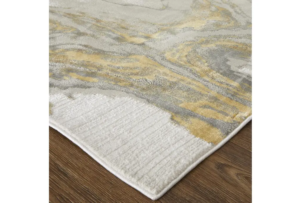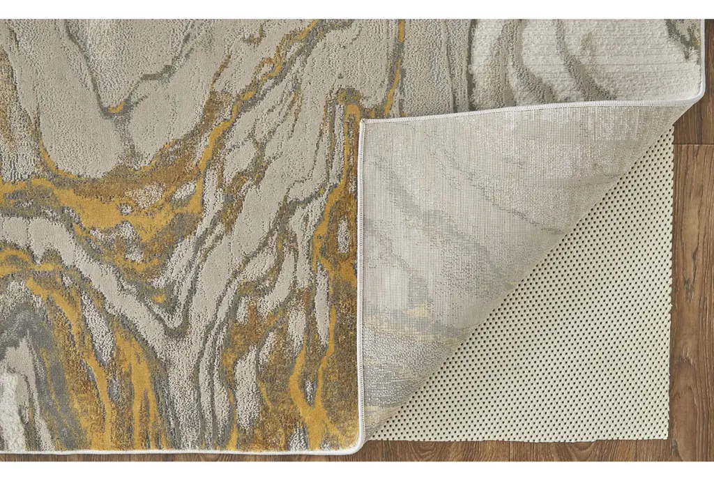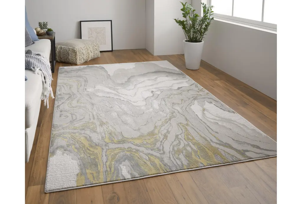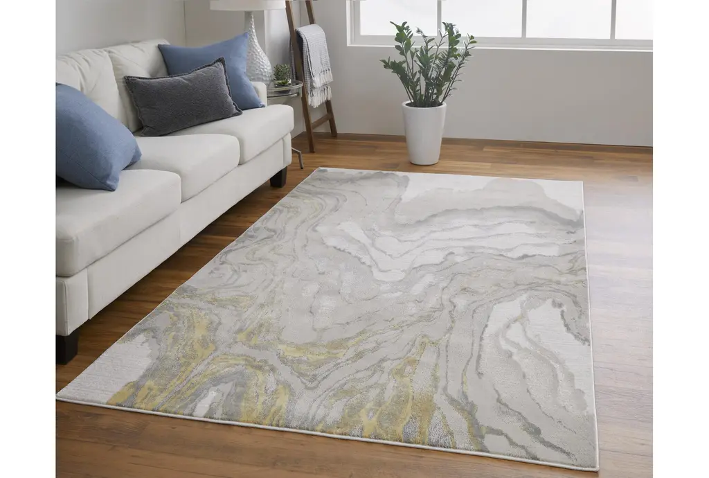 Bring a touch of contemporary style to your living space with the 10'x13'1" Rug-Tidal Impressions in Ivory/Gold. This abstract low pile area rug provides a soft and inviting feel underfoot, perfect for any indoor setting. Its unique color palette and design make it an eye-catching addition to your home decor.