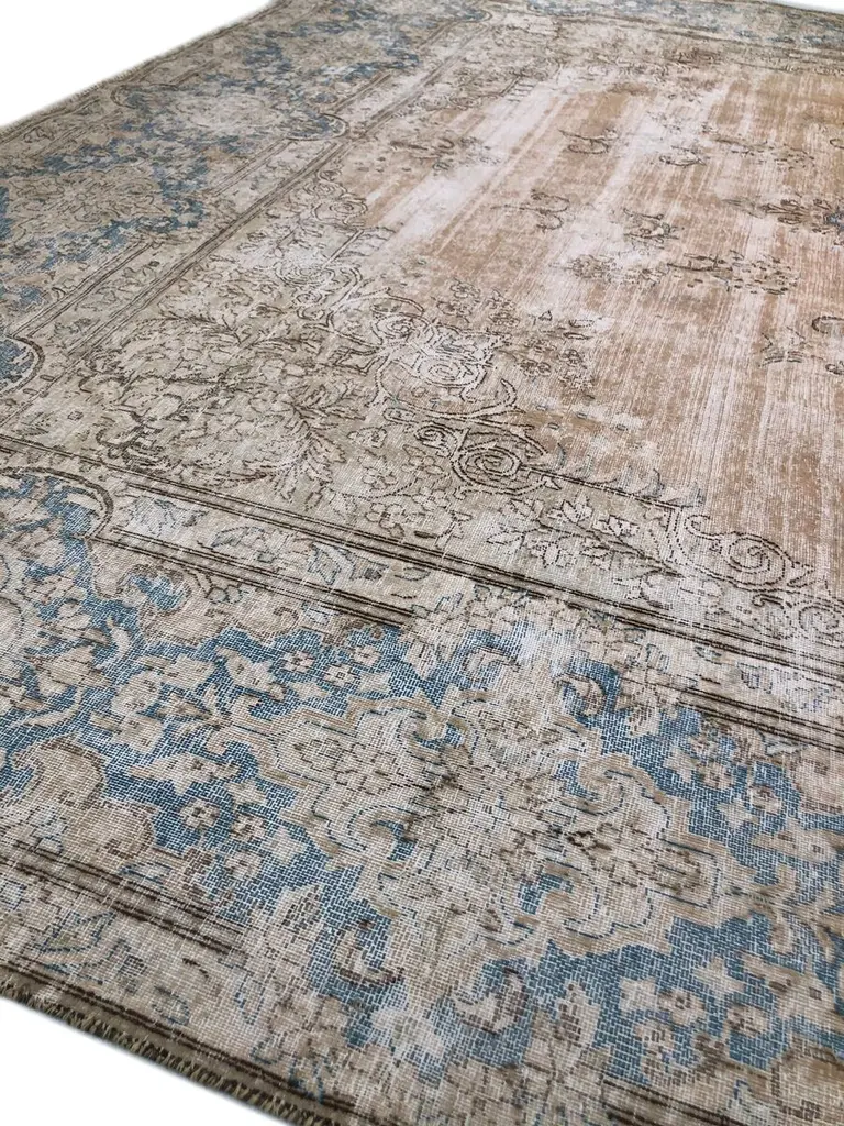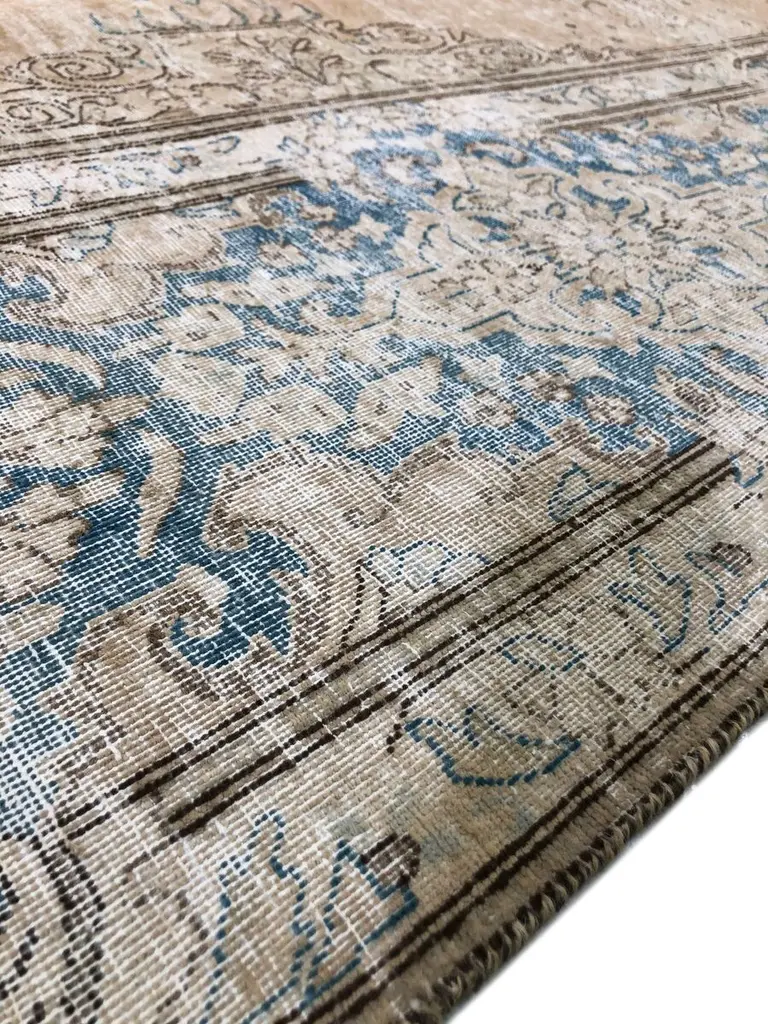 The blues and taupes that make up this rug's palette are as soft and inviting as the wool with which it was skillfully hand-knotted. The intentional abrash—subtle variations in color that occur over time—give it the allure of a treasured heirloom. We recommend a rug pad to protect your rug and keep it securely in place.