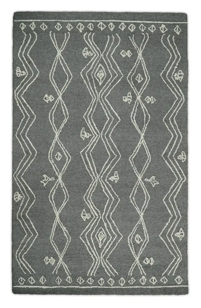 10x14 Ft Contemporary Moroccan-Style Hand-Knotted Wool Rug With Geometric Design