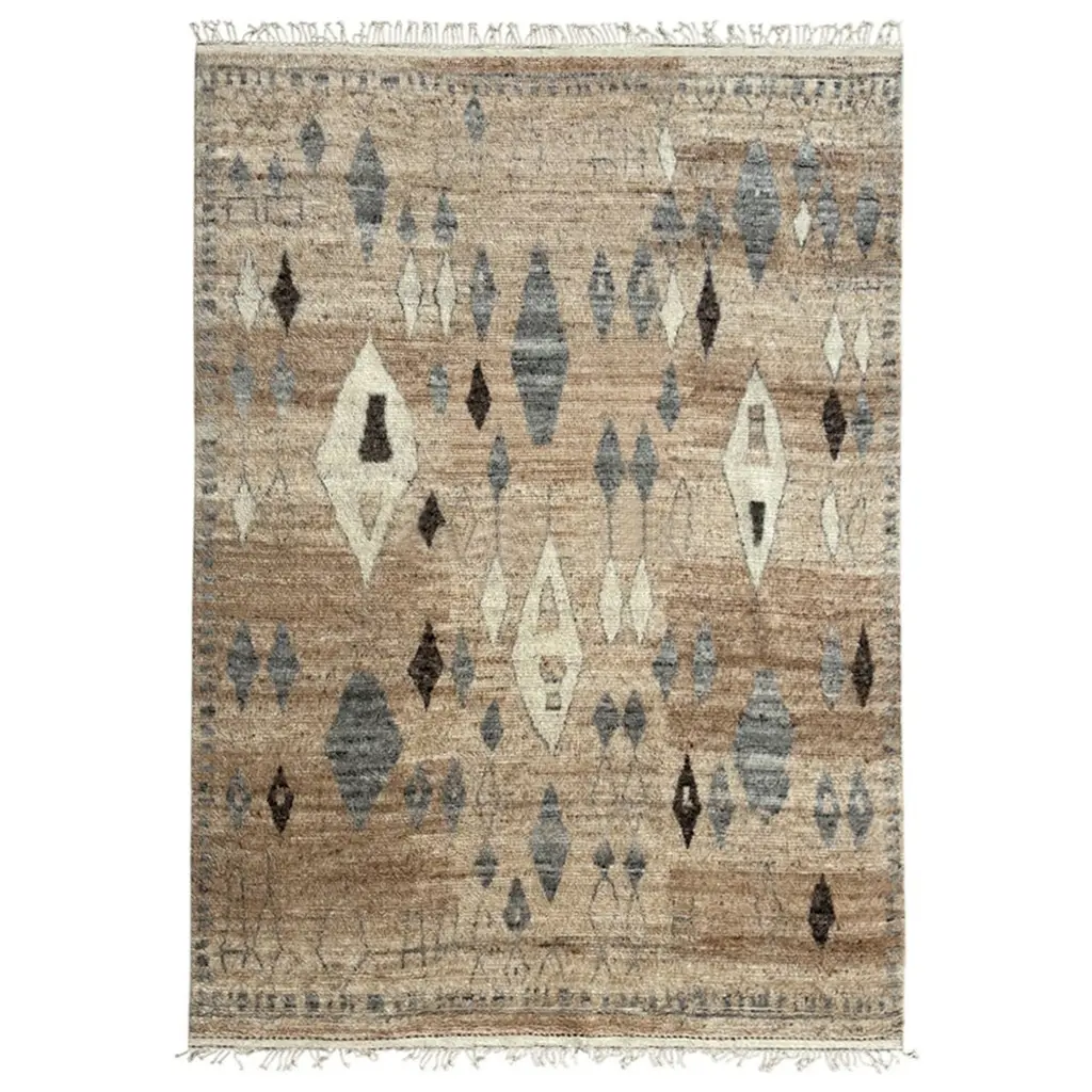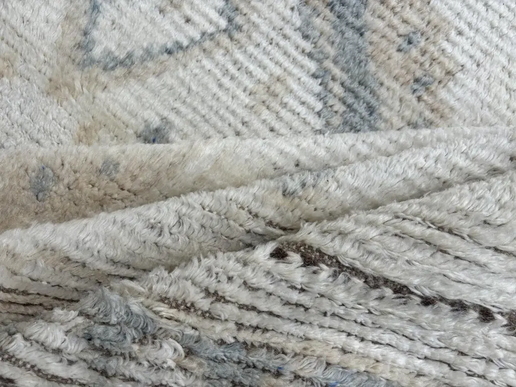 Elevate your living space with the exquisite charm of this new modern hand-knotted Moroccan berber beni ourain rug, crafted with precision and care from 100% wool. Combining the allure of Moroccan design with contemporary sensibilities, this rug is a striking addition to any home, offering both style and substance in equal measure.Each knot is meticulously handcrafted by skilled artisans, resulting in a texture that is both luxurious and resilient.Crafted entirely from wool, this Tulu rug offers warmth, softness, and durability, making it a practical and inviting choice for any room in your home. Whether placed in a living room, bedroom, or even a home office, this rug adds a touch of elegance and comfort to your space.As a new addition to your home, this modern Moroccan azilal style rug brings a fresh perspective to traditional craftsmanship. Its clean lines, contemporary design, and high-quality materials make it a versatile and timeless piece that will complement a wide range of interior styles.Elevate your decor with the modern sophistication of this hand-knotted Moroccan Tulu rug, where craftsmanship meets contemporary design to create a truly exceptional statement piece for your home.Size: 10 x 14 Ft (305 x 427 cm)Weaves: Hand-KnottedMaterials: 100% Natural WoolPile Height: MediumRoom: Any Room, Guestroom, Nursery, Kid's Room, Lounge, Living Room, Kitchen, Entryway, Salon, Trailer, Home Office / Study, Garage, Foyer, Dining Room, Conservatory, Bedroom, Basement, Utility/Laundry RoomAge: NewShape: RectangleType: Area Rug CUSTOM OPTIONS AVAILABLE Ref No: H037 Please inquire about wholesale pricing