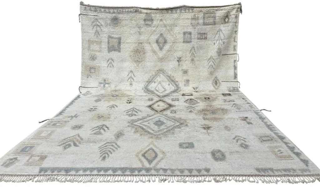 10x14 Ft Handmade Moroccan Style Rug. 100% Natural Wool. Beni Ourain Carpet
