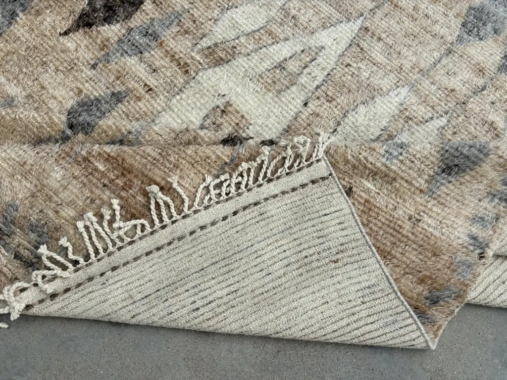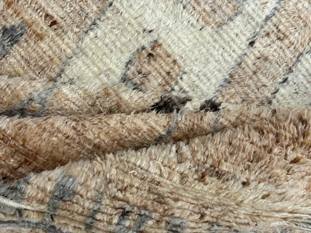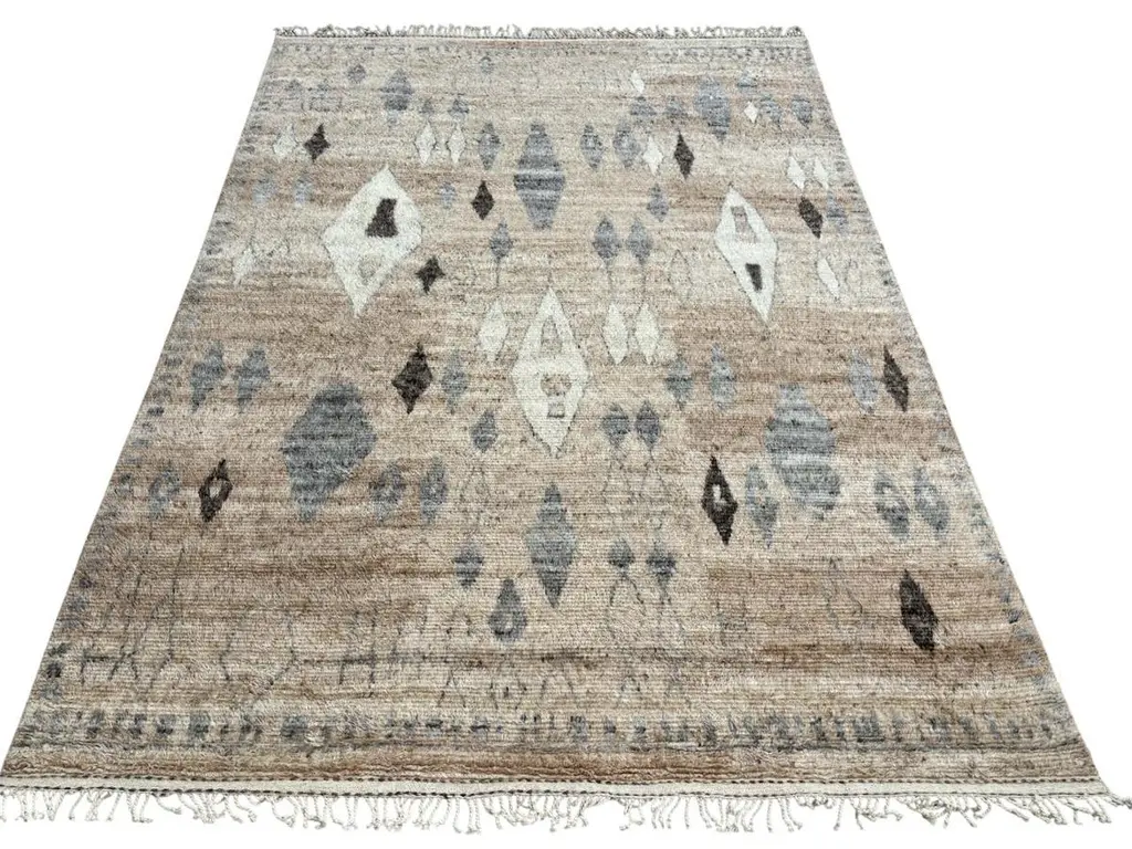 Elevate your living space with the exquisite charm of this new modern hand-knotted Moroccan berber beni ourain rug, crafted with precision and care from 100% wool. Combining the allure of Moroccan design with contemporary sensibilities, this rug is a striking addition to any home, offering both style and substance in equal measure.Each knot is meticulously handcrafted by skilled artisans, resulting in a texture that is both luxurious and resilient.Crafted entirely from wool, this Tulu rug offers warmth, softness, and durability, making it a practical and inviting choice for any room in your home. Whether placed in a living room, bedroom, or even a home office, this rug adds a touch of elegance and comfort to your space.As a new addition to your home, this modern Moroccan azilal style rug brings a fresh perspective to traditional craftsmanship. Its clean lines, contemporary design, and high-quality materials make it a versatile and timeless piece that will complement a wide range of interior styles.Elevate your decor with the modern sophistication of this hand-knotted Moroccan Tulu rug, where craftsmanship meets contemporary design to create a truly exceptional statement piece for your home.Size: 10 x 14 Ft (305 x 427 cm)Weaves: Hand-KnottedMaterials: 100% Natural WoolPile Height: MediumRoom: Any Room, Guestroom, Nursery, Kid's Room, Lounge, Living Room, Kitchen, Entryway, Salon, Trailer, Home Office / Study, Garage, Foyer, Dining Room, Conservatory, Bedroom, Basement, Utility/Laundry RoomAge: NewShape: RectangleType: Area Rug CUSTOM OPTIONS AVAILABLE Ref No: H058 Please inquire about wholesale pricing