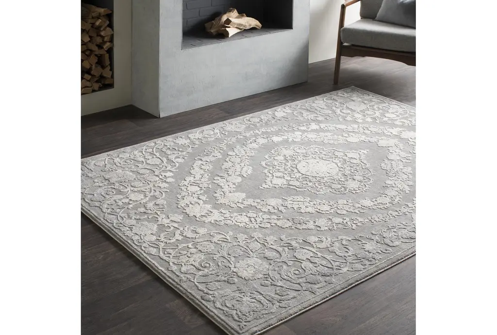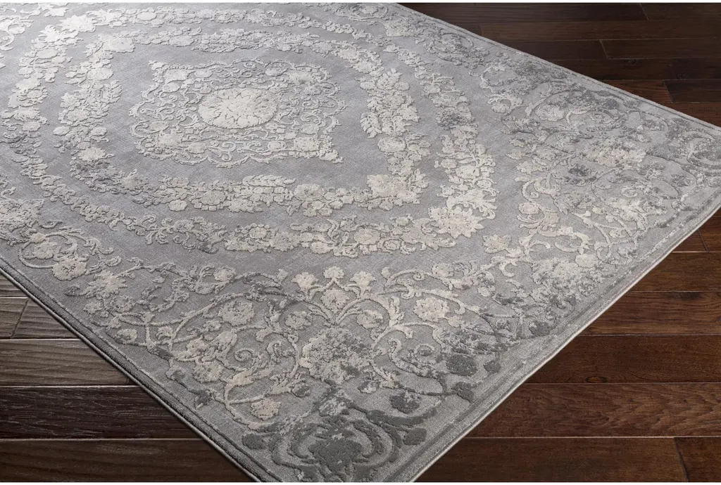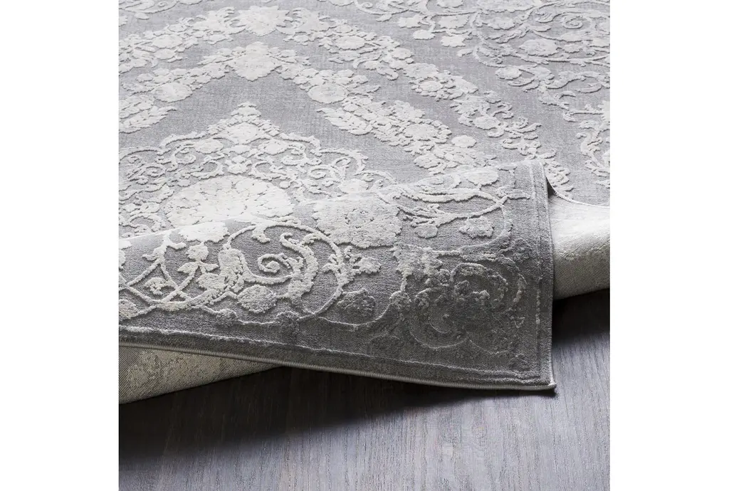 11'8"x14'9" Rug-Traditional Grey Floral Fiber Sheen | Moroccan | Low Pile | Rectangle By Surya