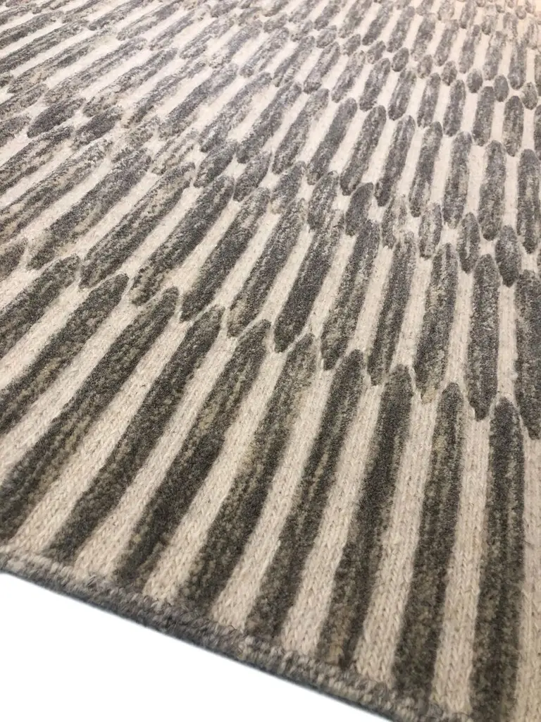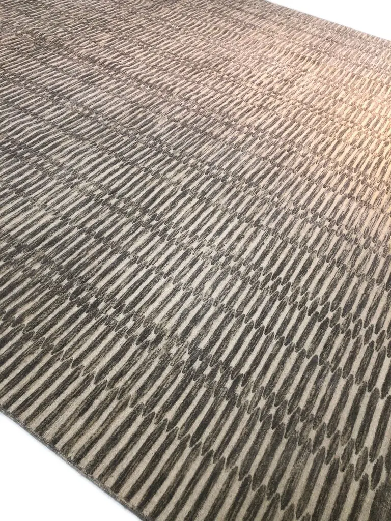 The high-low pile gives this hand-knotted wool rug its graphic design as well as its sumptuous texture. Its neutral hues will complement just about any room—and it's a pleasure to walk barefoot on too! We recommend a rug pad to protect your rug and keep it securely in place.