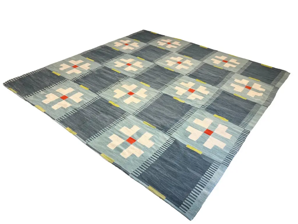 14x14 Ft Handwoven Scandinavian Design Flatweave Rug. Custom Sizes & Colors Avl
