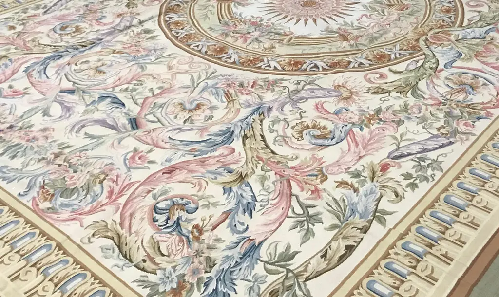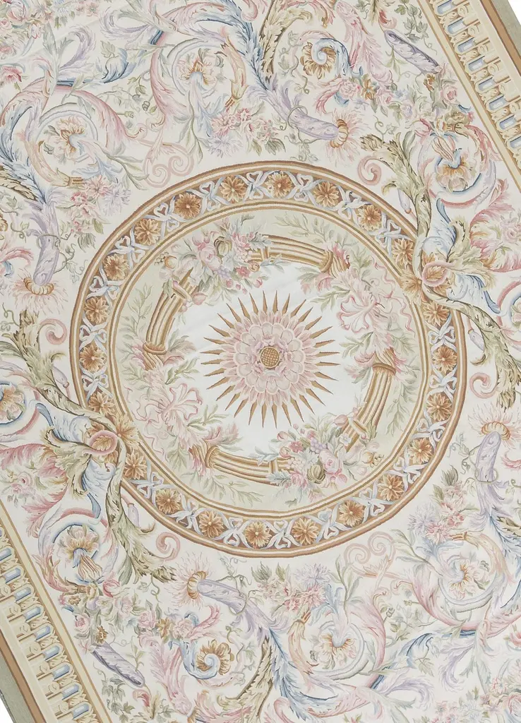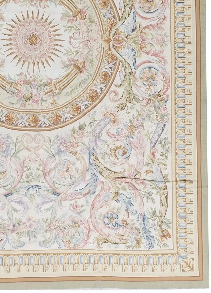 Handwoven Recreation of the Classic French flat-weave Aubusson rugs that have been found in the finest homes and palaces since the late 17th century. Size: 9' 10" x 14' 1".