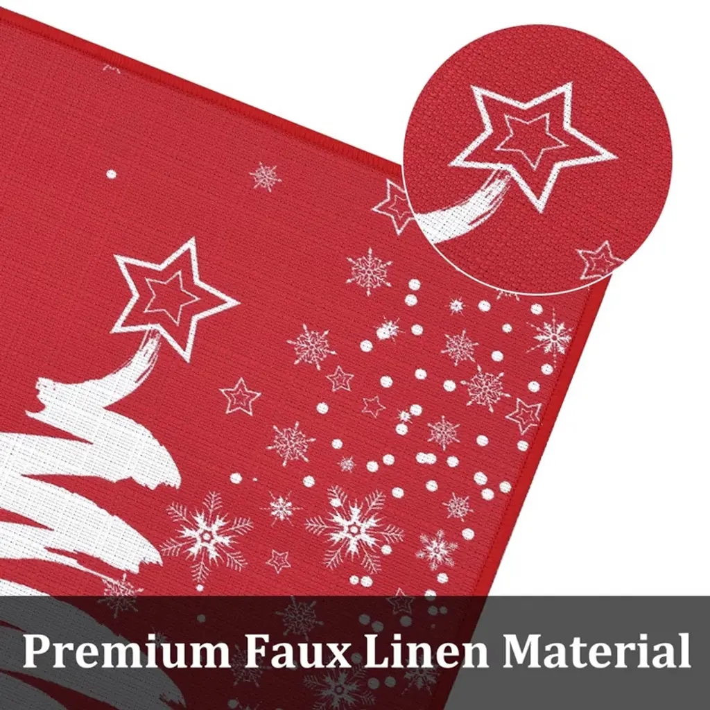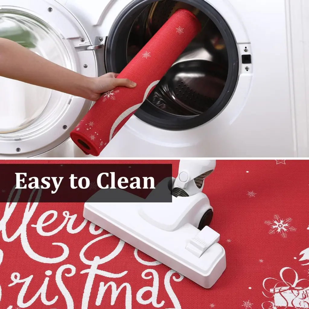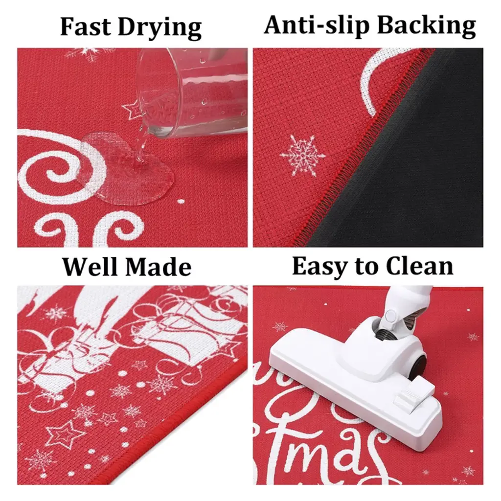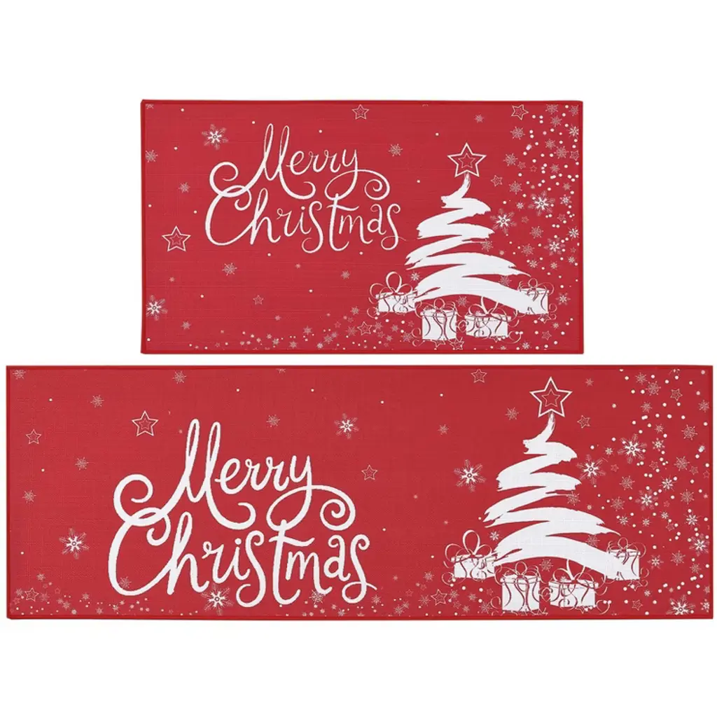 Add festive charm and cozy comfort to your home this holiday season with our Christmas Kitchen Rugs and Mats Set. This set includes two mats, sized 17x29 inches and 17x47 inches, designed to bring warmth and seasonal spirit to your kitchen or any room. Featuring a beautiful winter holiday tree and snow design in vibrant red, these mats perfectly capture the essence of Christmas decoration. Our mats are crafted with non-slip backing to ensure safety on any floor surface, preventing slips and falls even in busy kitchen areas. The non-shedding material keeps your floors clean and tidy, while the stain-resistant fabric makes maintenance simple and hassle-free. These rugs are washable, allowing you to keep them looking fresh and vibrant throughout the holiday season and beyond. Ideal for kitchens, entryways, or living areas, this set enhances your home’s festive décor while providing comfort underfoot during chilly winter days. The durable construction ensures long-lasting use, making these mats a practical and beautiful addition to your holiday decorations.