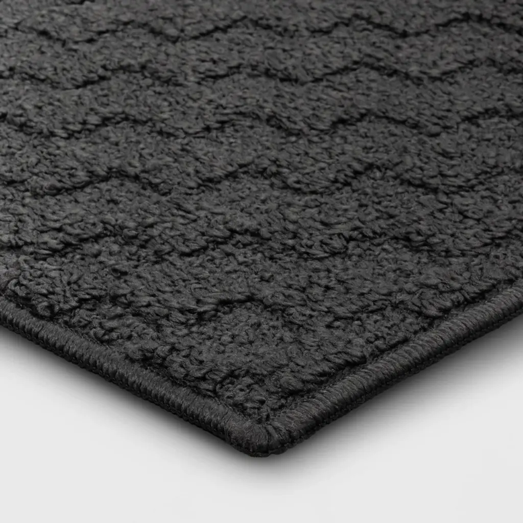 Add comfy style to your home with this Tufted Rug from Room Essentials™. This medium-pile accent rug showcases a tufted construction with a boxed design in dark gray, adding a cozy touch to any indoor space. Plus, it boasts a nonskid latex backing for secure placement and a machine-washable design for enhanced convenience. Use it to highlight specific areas, such as in front of a reading chair or small desk, or keep it inside your entryway for a welcoming touch.Room Essentials™: Everyday Value