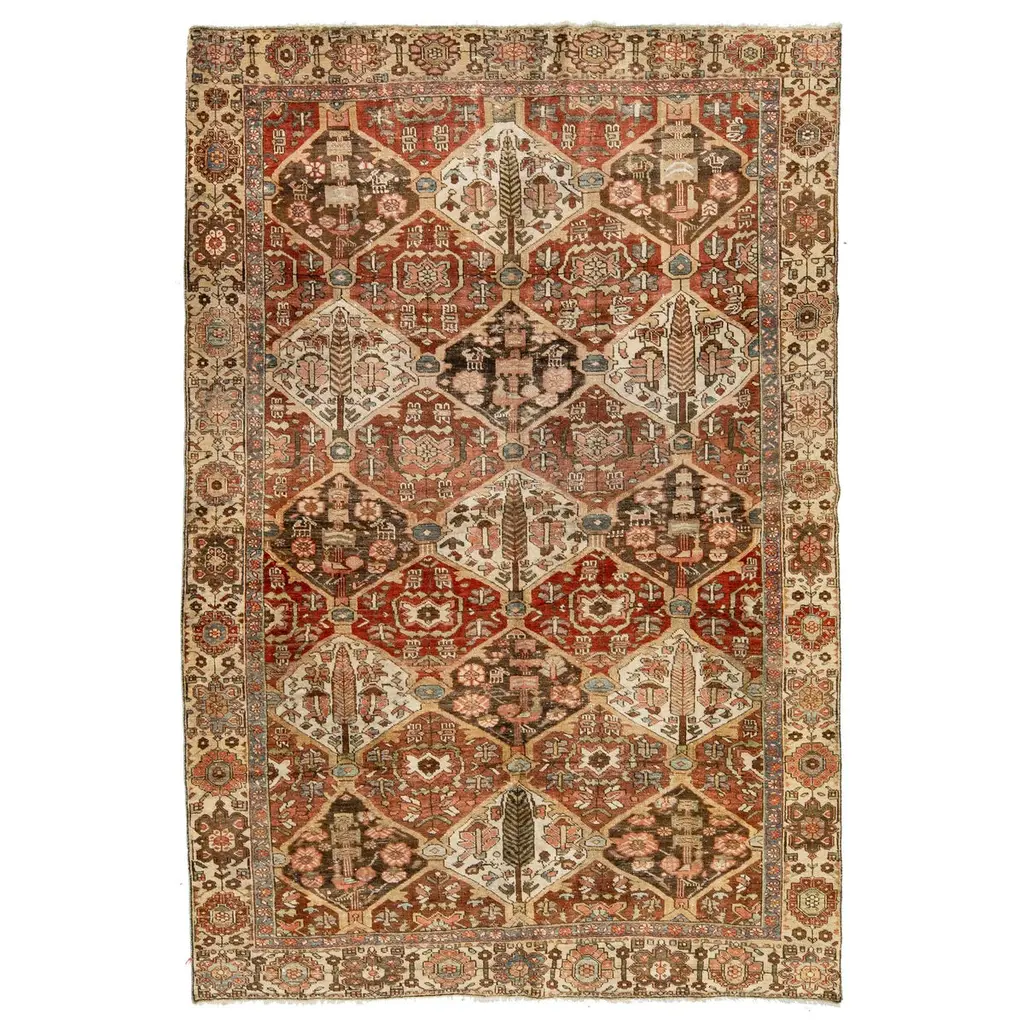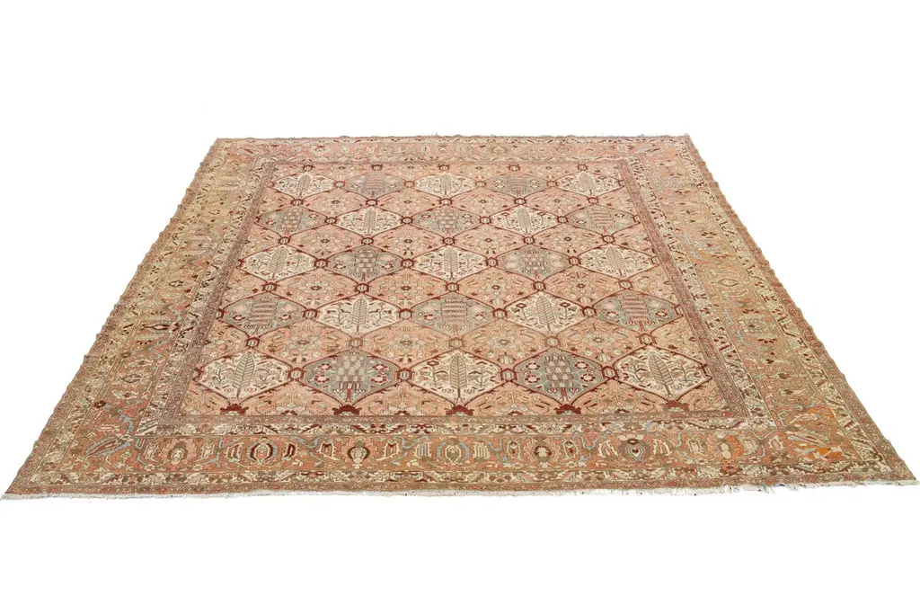 1920s Persian Bakhtiari Peach Wool Rug Handmade With Allover Geometric Pattern