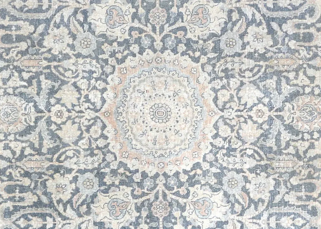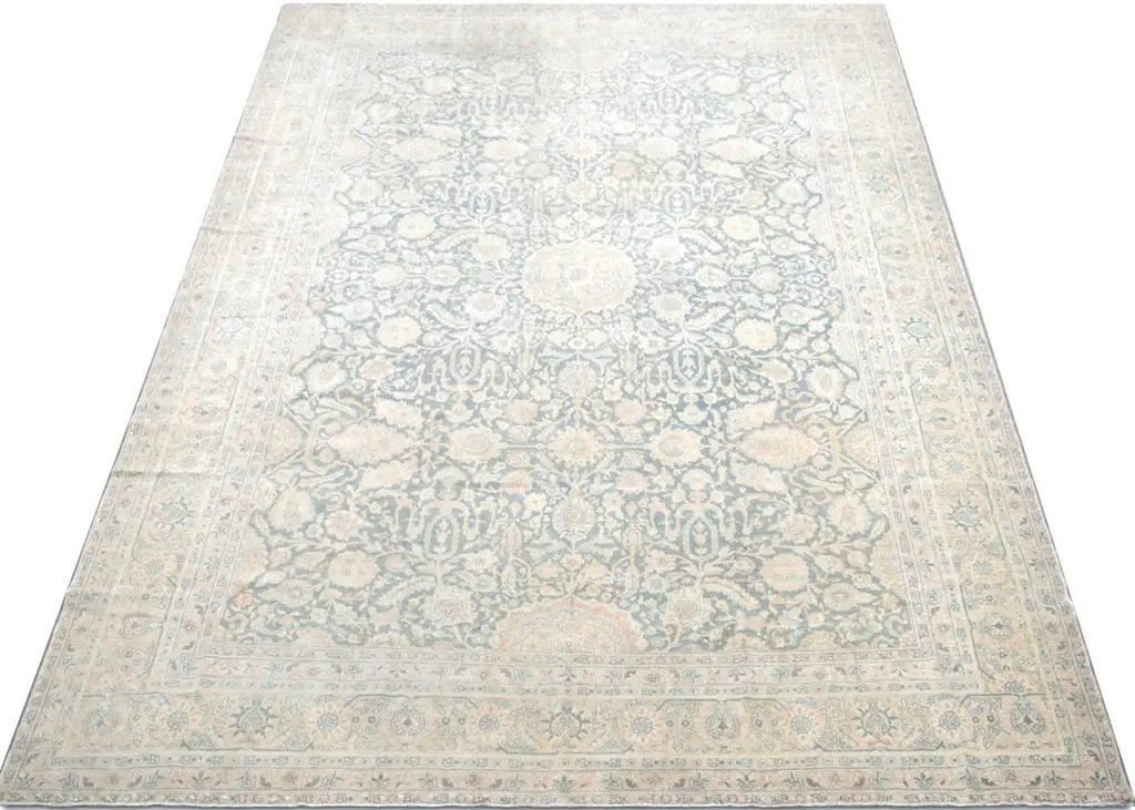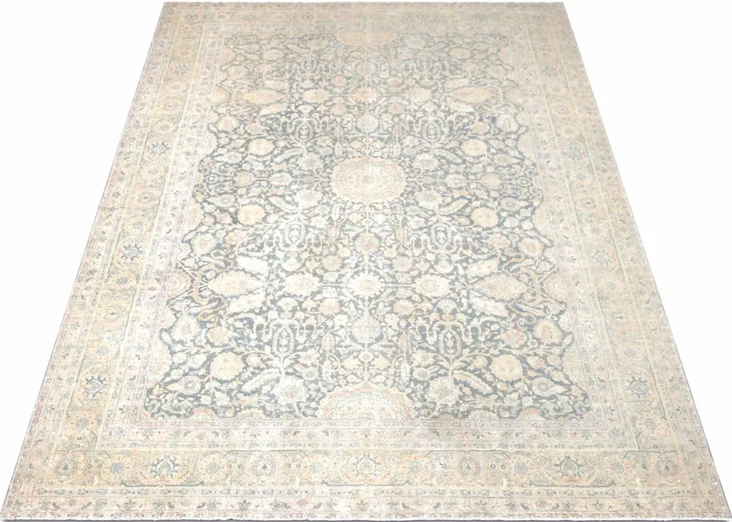 1920s Persian Tabriz Rug. Hand woven in the Tabriz region of Northern Iran. Distressed and refinished in the U.S. The Persian carpet is a part of the Persian (Iranian) art and culture. Carpet-weaving in Persia dates back to the Bronze Age. The earliest surviving Persian carpets come from the Safavid dynasty in the 16th century.