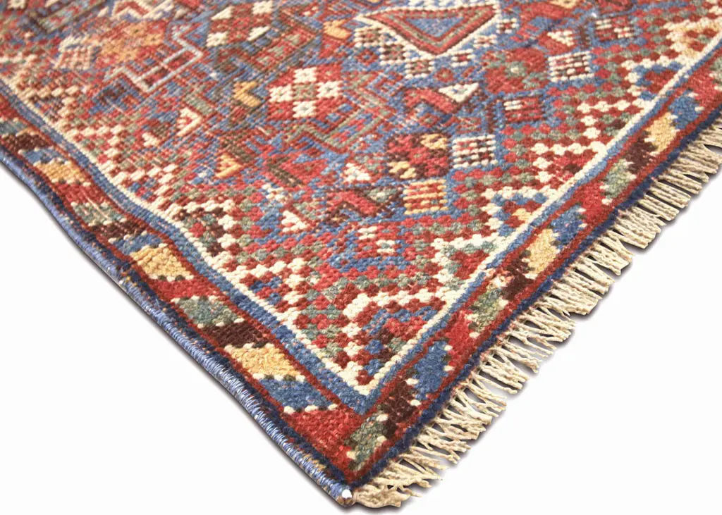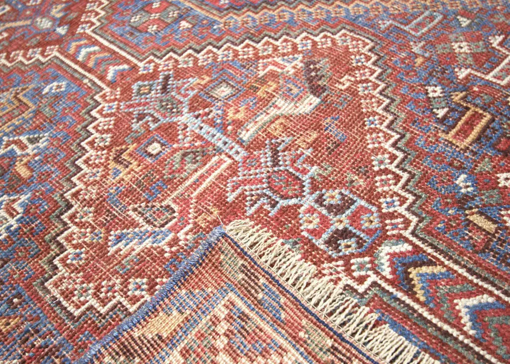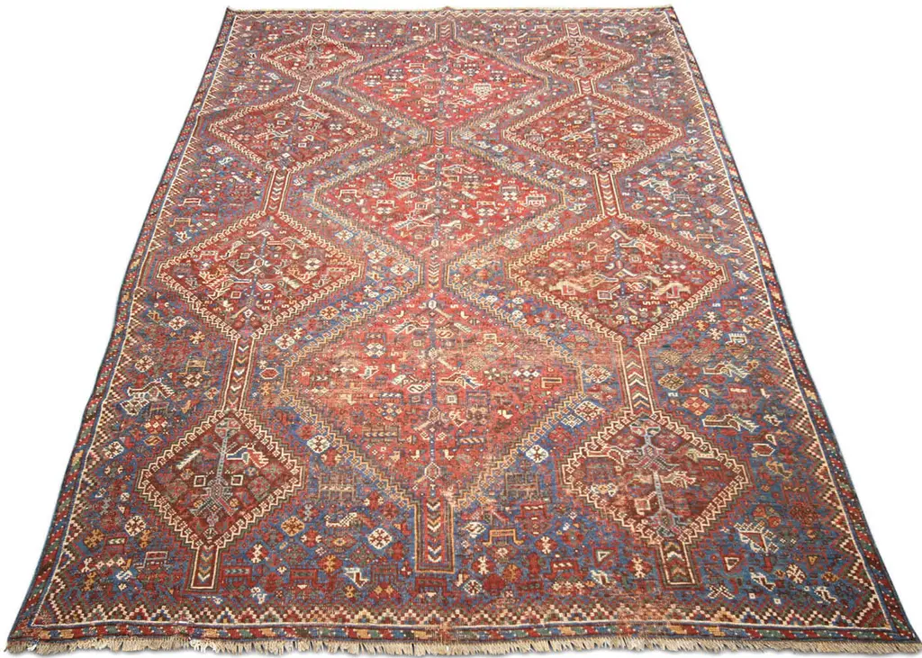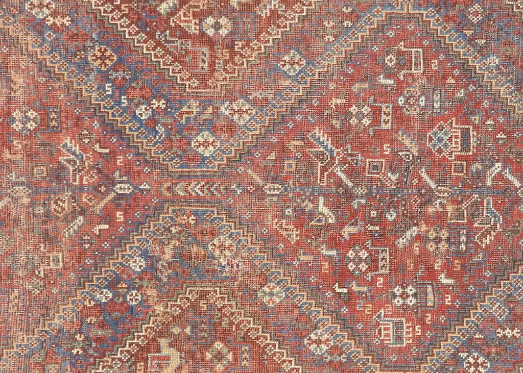 1930s Persian Shiraz Rug. Hand woven in the Shiraz region of Southern Iran. The Persian carpet is a part of the Persian (Iranian) art and culture. Carpet-weaving in Persia dates back to the Bronze Age. The earliest surviving Persian carpets come from the Safavid dynasty in the 16th century.