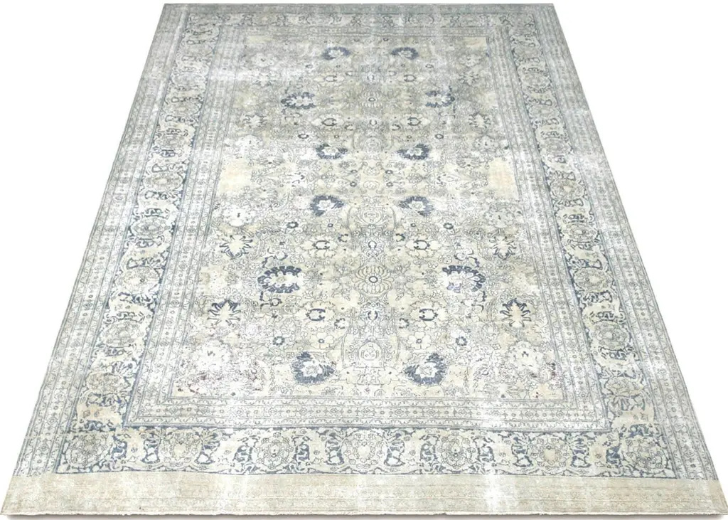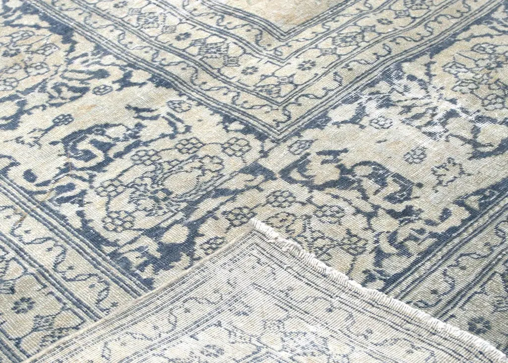 1940s Semi Antique Persian Tabriz Rug. Hand woven in the Tabriz region of Northern Iran. Distressed and refinished in the U.S. The Persian carpet is a part of the Persian (Iranian) art and culture. Carpet-weaving in Persia dates back to the Bronze Age. The earliest surviving Persian carpets come from the Safavid dynasty in the 16th century.