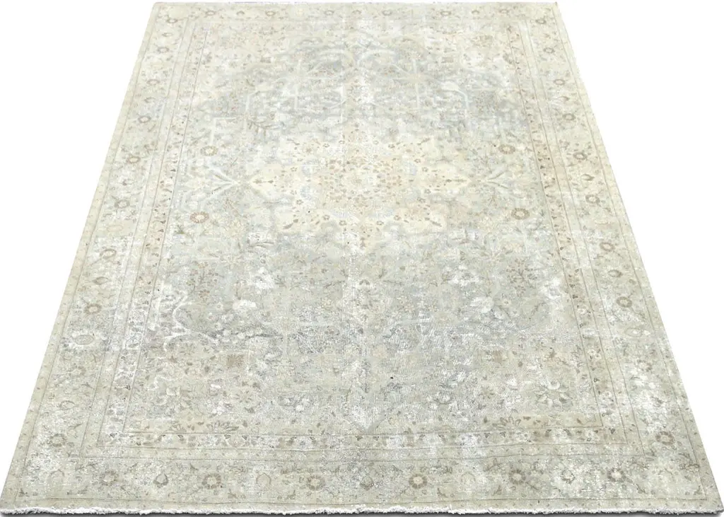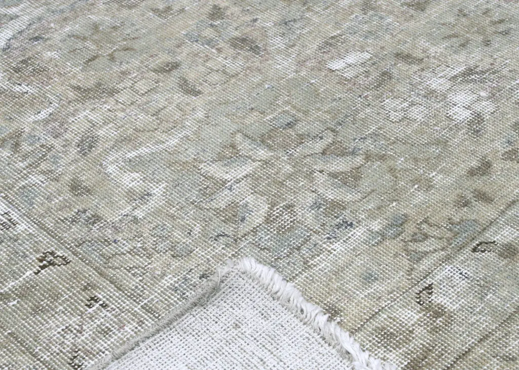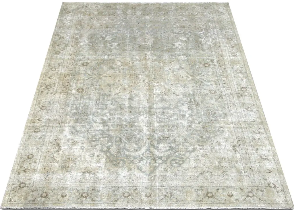 1940s Persian Tabriz Rug. Hand woven in the Tabriz region of Northern Iran. Distressed and refinished in the U.S. The Persian carpet is a part of the Persian (Iranian) art and culture. Carpet-weaving in Persia dates back to the Bronze Age. The earliest surviving Persian carpets come from the Safavid dynasty in the 16th century.