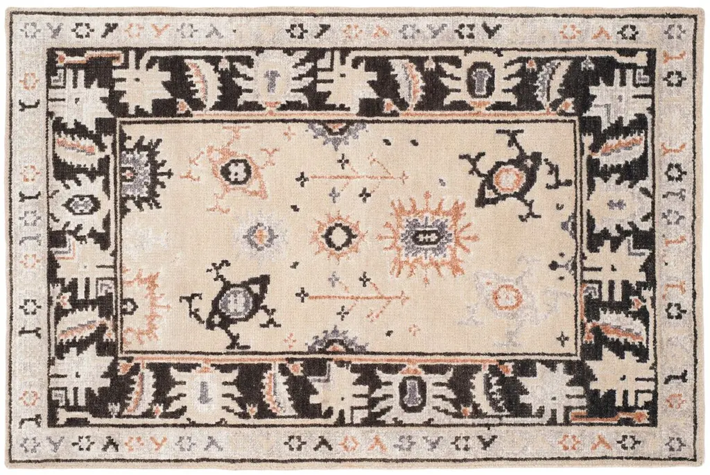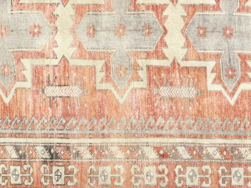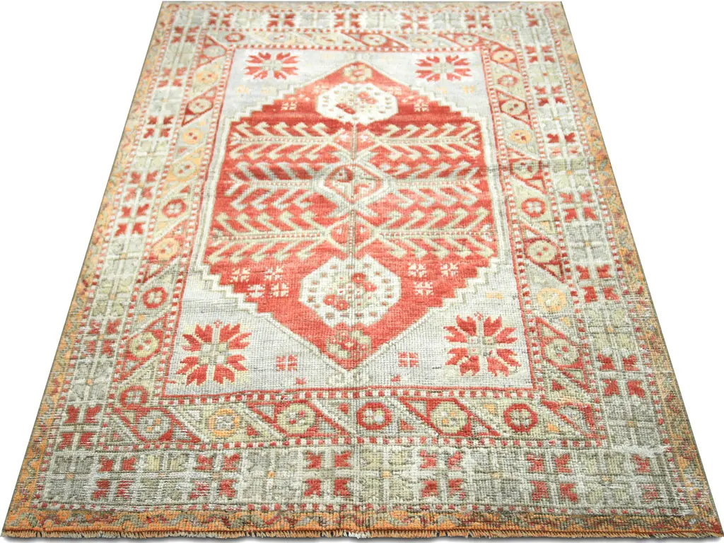 1960s Turkish Oushak Rug - 3'8" x 6'4", Turkish Oushak Rugs are Hand-woven with wool on wool foundation in various regions of the Anatolian plateau, where the weaving of oriental rugs originated. Rich in tradition and pride, each of the villages of the area produced a certain design and colors that the neighbors rarely copied. These masterpieces were largely illustrated in historical European painting. Their bold geometrical designs and soft colors made them favorites of interior designers.