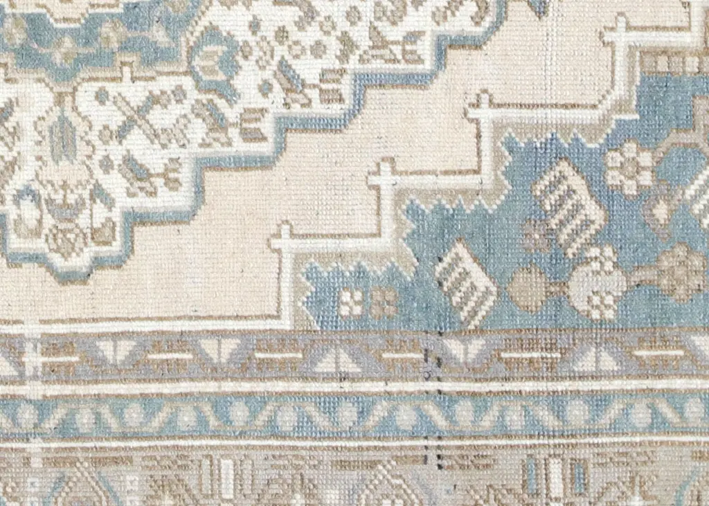 1960s Turkish Oushak Carpet. Handwoven with wool on wool foundation in the Oushak region of Western Turkey. The Anatolian plateau is where the weaving of oriental carpets originated. Rich in tradition and pride, each of the villages of the area produced a certain design and colors that the neighbors rarely copied. These Antiques were largely illustrated in historical European painting. Their bold geometrical designs and soft colors made them favorites of interior designers.