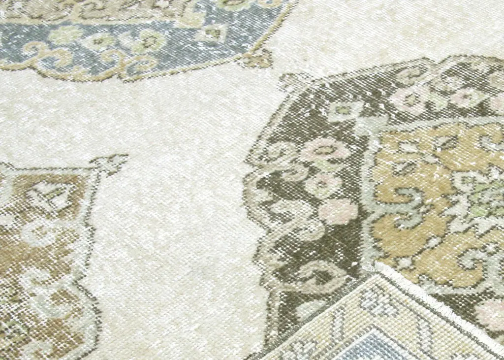 1960s Vintage Turkish Oushak Carpet. Hand woven with wool on wool foundation in the Oushak region of Western Turkey. Oushak in Western Turkey has been a powerhouse of decorative carpet production since the early Ottoman years dating back to the 14th century. Antique, Vintage, vintage or new, these masterpieces have been sought after by interior designers to decorate European and American interiors.