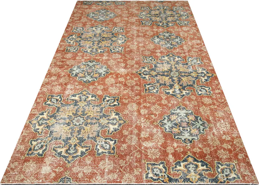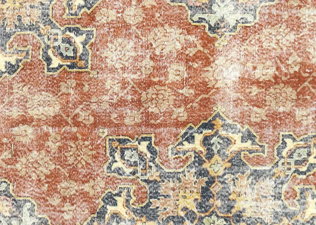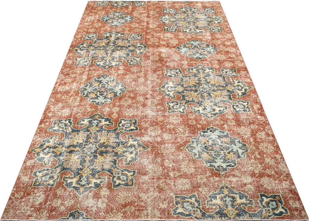 1960s Turkish Oushak Rug. Handwoven with wool on wool foundation in the Oushak region of Western Turkey. The Anatolian plateau is where the weaving of oriental carpets originated. Rich in tradition and pride, each of the villages of the area produced a certain design and colors that the neighbors rarely copied. These Antiques were largely illustrated in historical European painting. Their bold geometrical designs and soft colors made them favorites of interior designers.