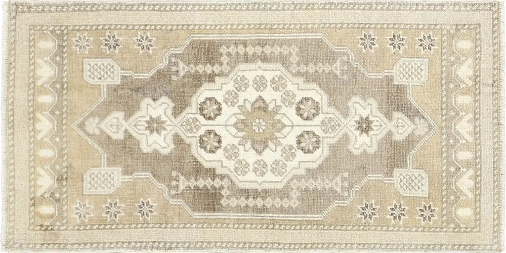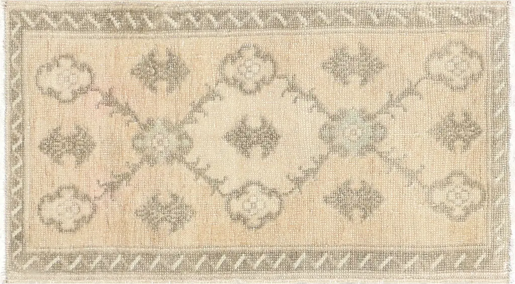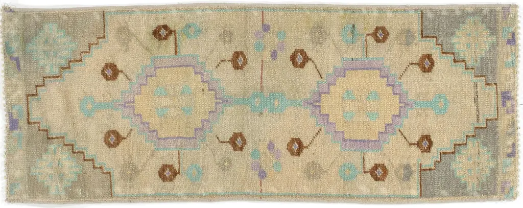 This vintage Turkish Oushak Yastic rug measures 1'7" x 3'4" and boasts unique, intricate design and high-quality materials. Perfect for adding a touch of elegance to any space.