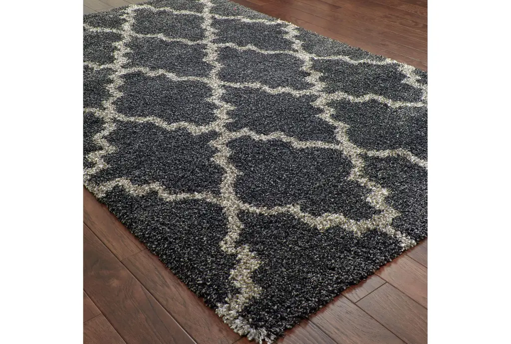 1'9"x3'3" Fiber Rug-Beverly Traditional Shag Geometric Quatrefoil Graphite Rectangle | Lattice