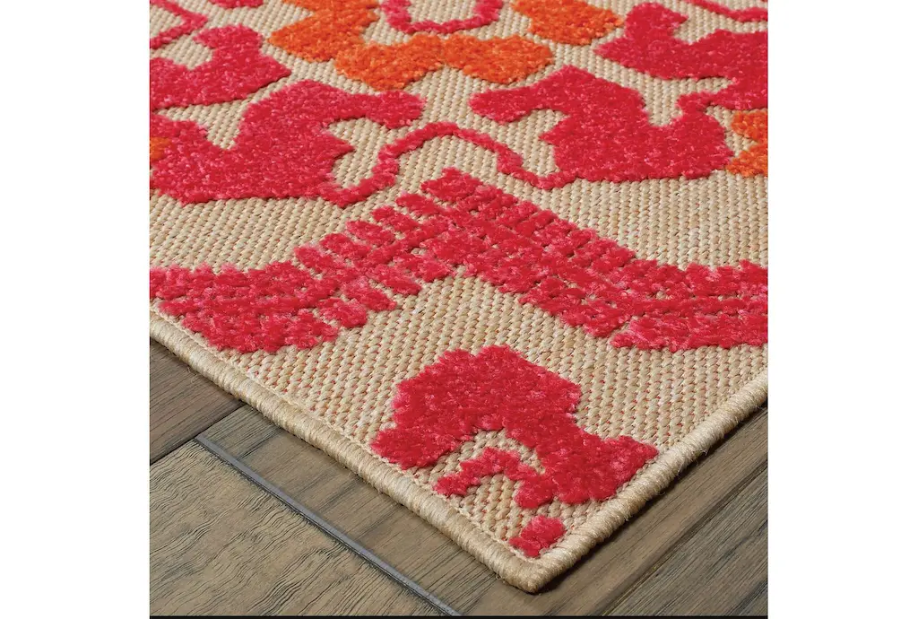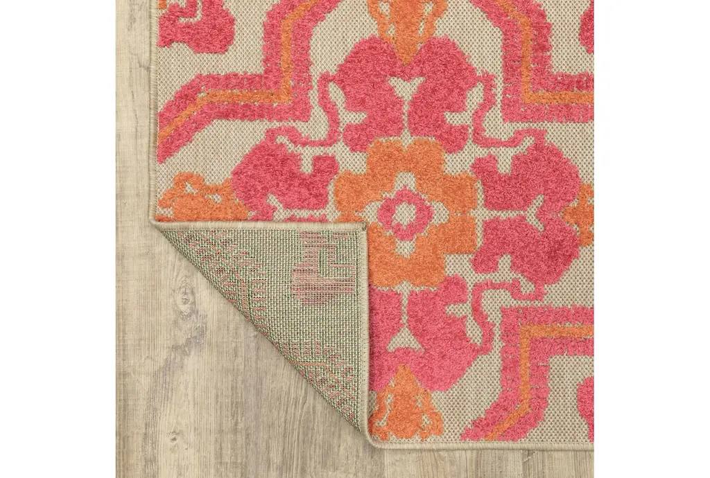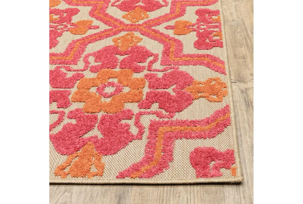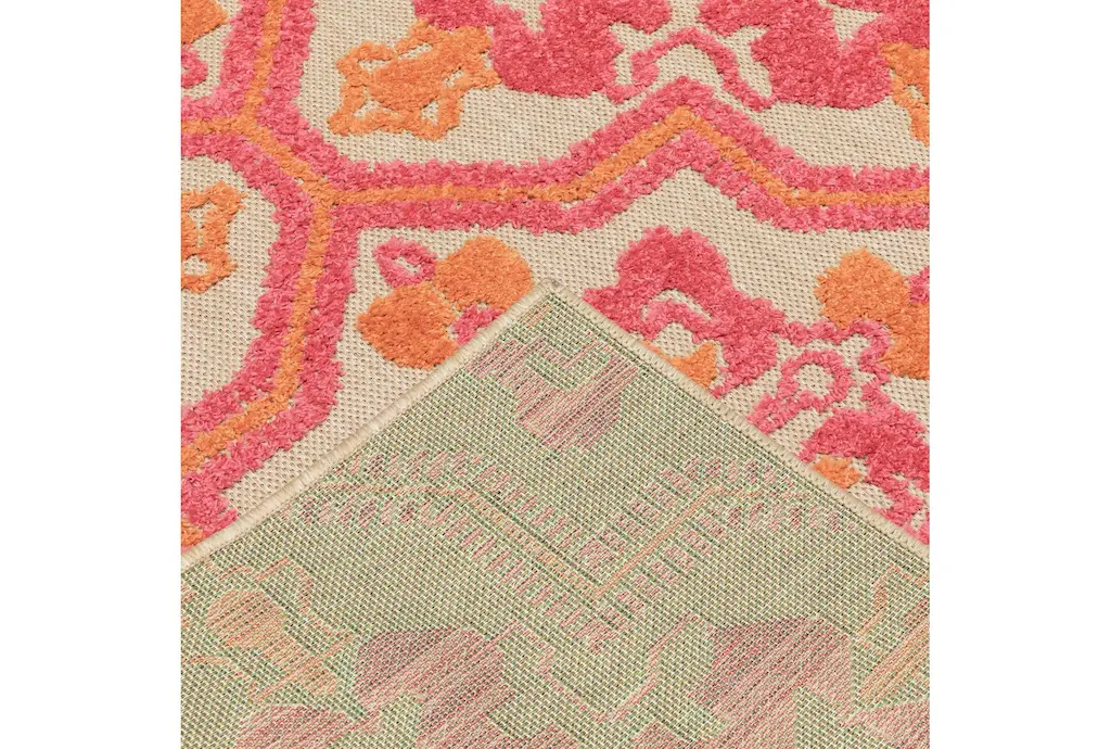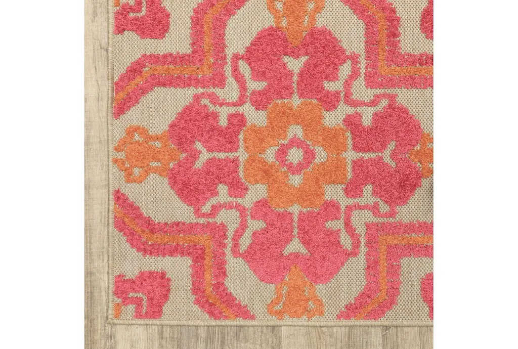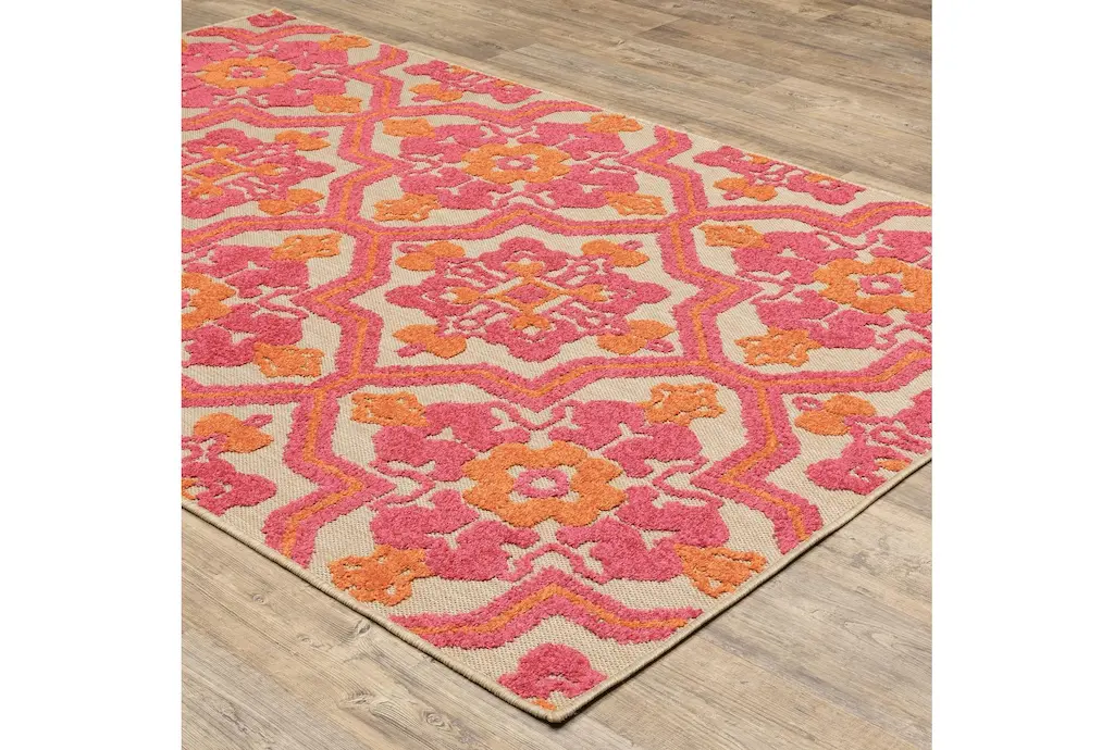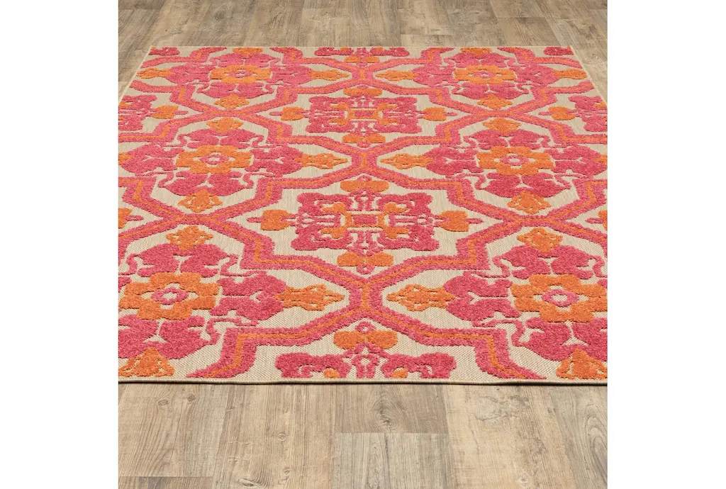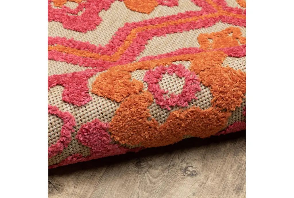 1'9"x3'3" Indoor/outdoor Fiber Rug-Fuschia And Mandarin Aztec | Floral | Rectangle