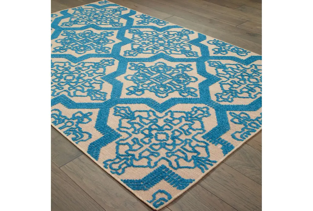 This 1'9" x 3'3" rectangle indoor/outdoor fiber rug features a stunning blue Aztec geometric design. The traditional style combined with boho elements makes it a versatile addition to any space. Crafted from durable polypropylene, this rug is both mildew resistant and non-slip, ensuring longevity and safety.
