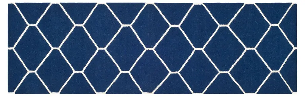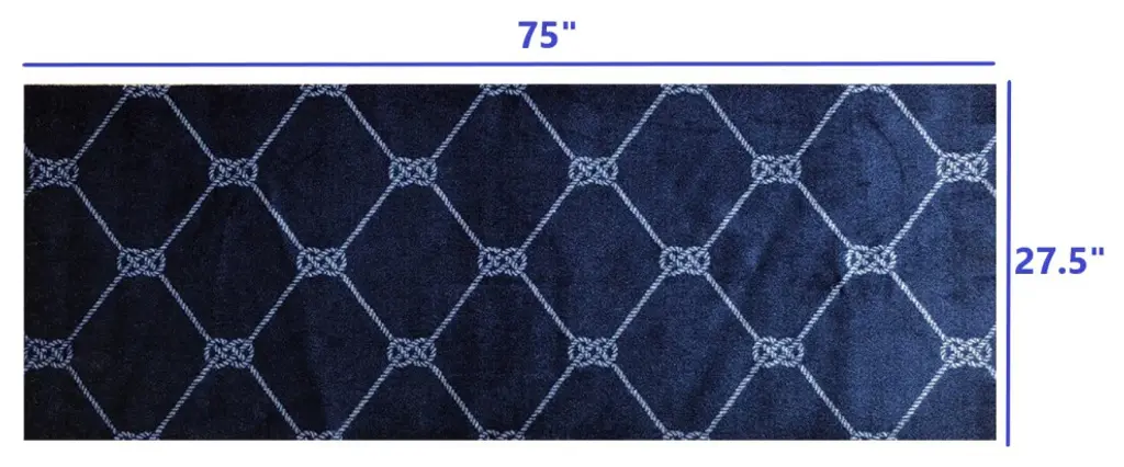 This low profile Navy Nautical Knots Washable Floor Mat is a game changer. A fade resistant slightly distressed nautical rope design in a deep indigo blue that is super sturdy and can easily be thrown into the washer and dryer to clean. The premier formula rubber backing used makes this nylon rug slip resistantr with no need for an additional pad, and the backing will hold up during the wash and dry! The low profile means it easily fits under doors. Combine fashion and style with real life functionality with this great area rug/door mat. 27.5" x 47" x .3"