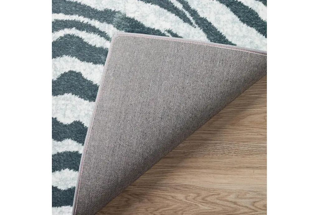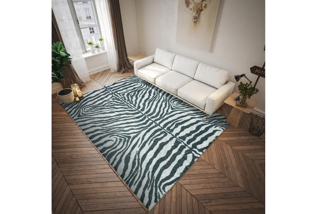 This 20"x30" rug is a modern addition to any room with its plush faux fur zebra print design in grey. Its shag style and use of polyester and faux fur materials make it super soft and cozy to the touch.