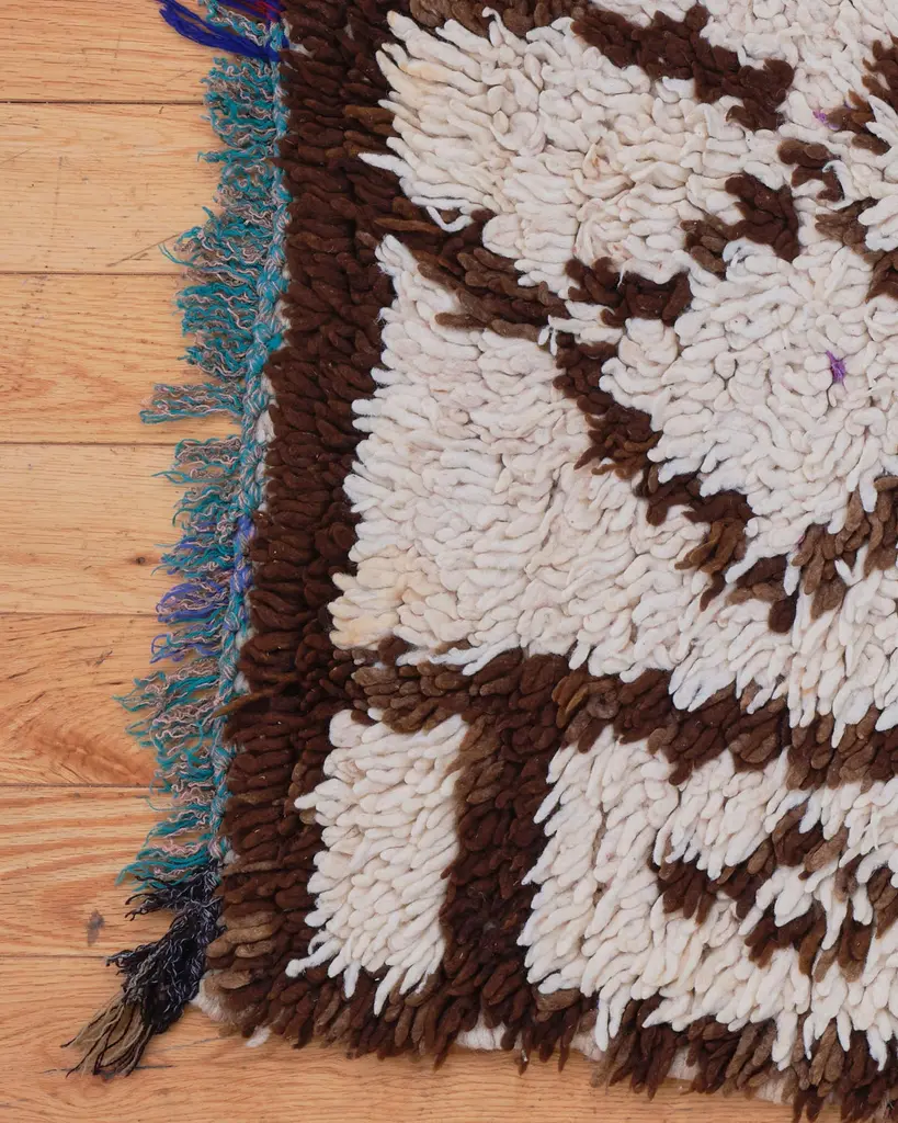Lilium is a charming vintage Moroccan rug that blends traditional craftsmanship with warm, earthy tones. Handwoven by Berber artisans, this petite piece features a soft cream base accented with rich brown motifs, lending a grounded yet organic elegance to any space. Its narrow proportions make it ideal for hallways, bedsides, or layered within a curated rug arrangement.Made from 100% natural sheep’s wool, Lilium offers a plush texture underfoot and is prized for its durability and authentic character. The hand-knotted construction and timeworn patina tell a story of heritage and artistry, making it both a decorative accent and a collector’s treasure.Care Instructions: Vacuum regularly with a non-abrasive head. Spot clean spills promptly. Avoid dry cleaning. For deep cleaning, consult a professional rug specialist.A soulful addition for lovers of vintage, handmade design.