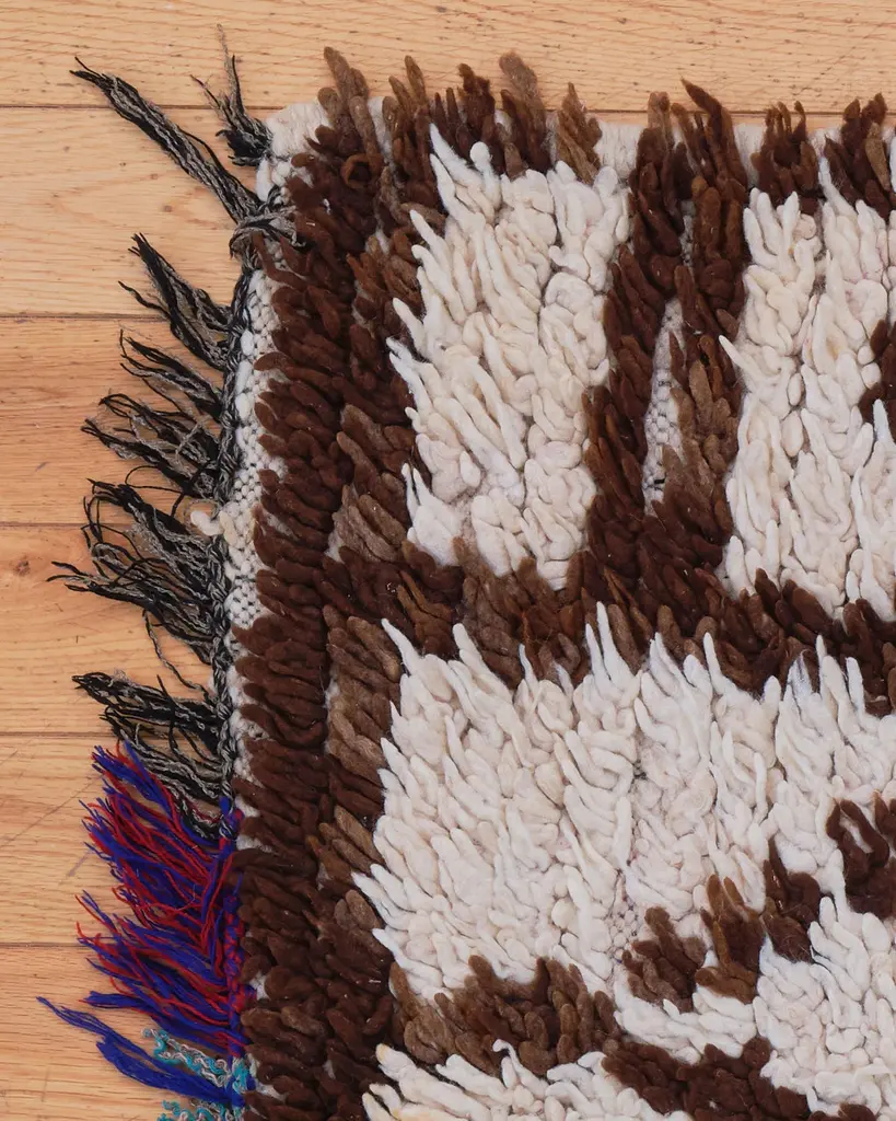 2’10” X 5’5” Lilium Brown, Ivory Handmade Moroccan Wool Vintage Rug