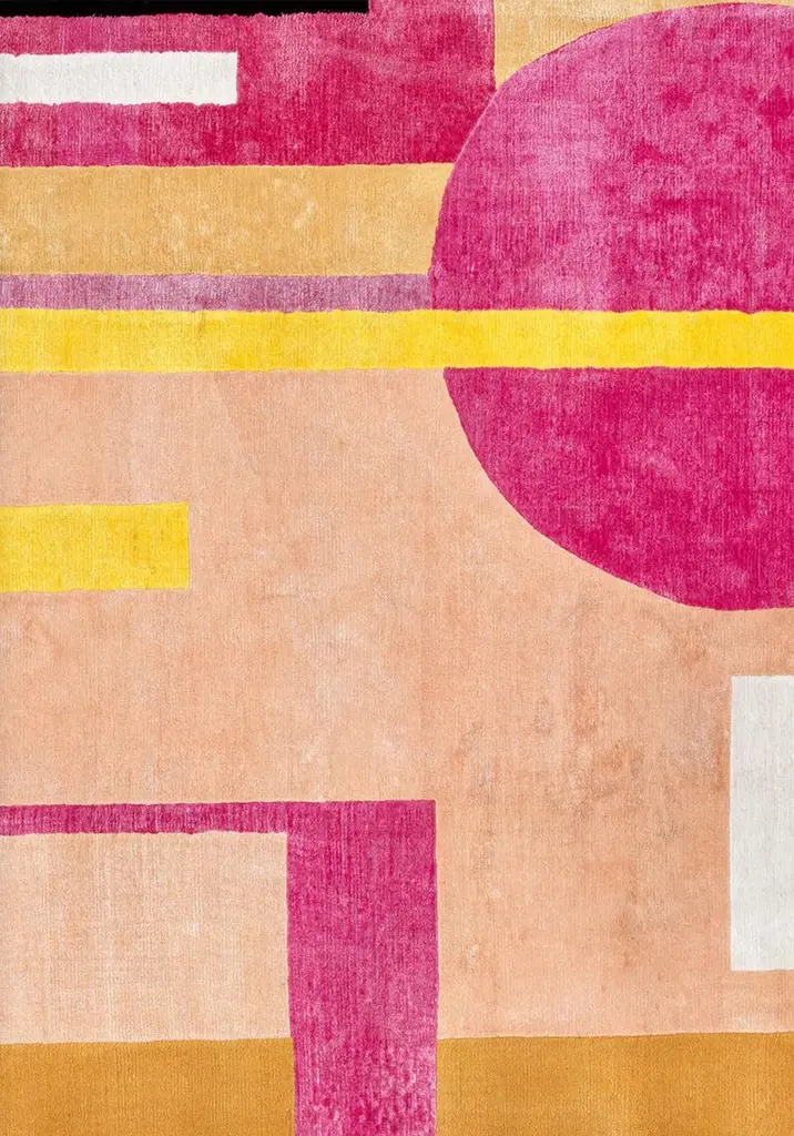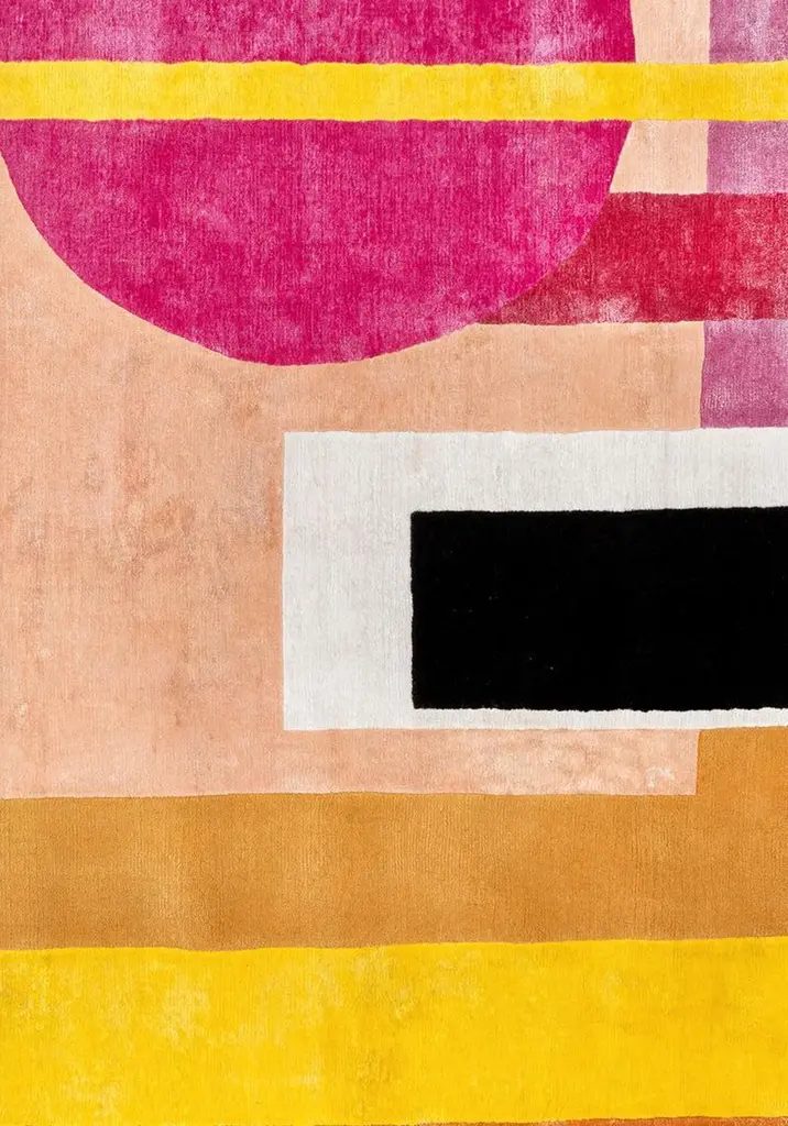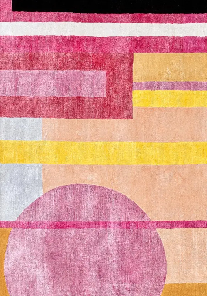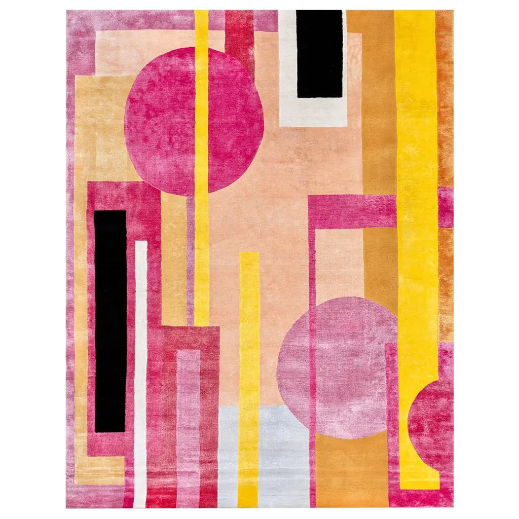 21st Century Carpet Rug Deko In Himalayan Wool And Silk Pink, Orange, Yellow