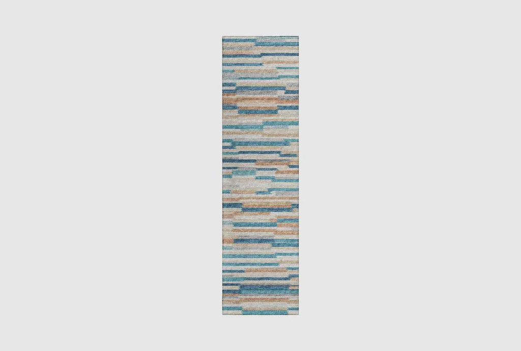 2'3"x12' Rug-Zooey Stripes Aqua | Waterproof | Rectangle | Non Slip