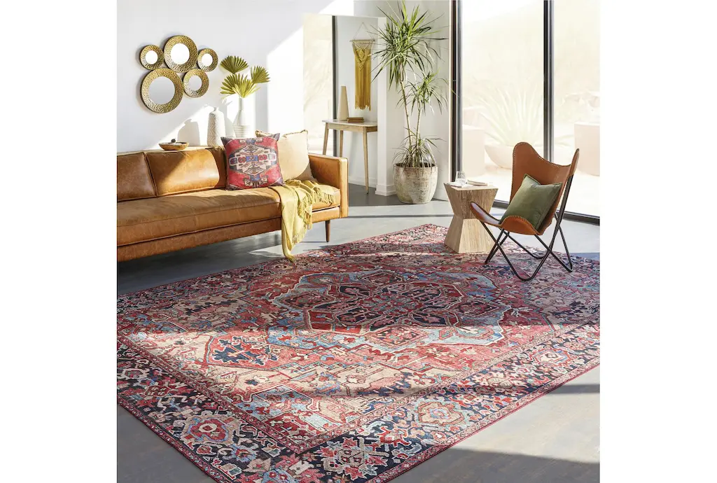 2'3"x3'8" Fiber Rug-Traditional Botanical Red & Navy Bold | Rainbow | Low Pile | Rectangle By Surya