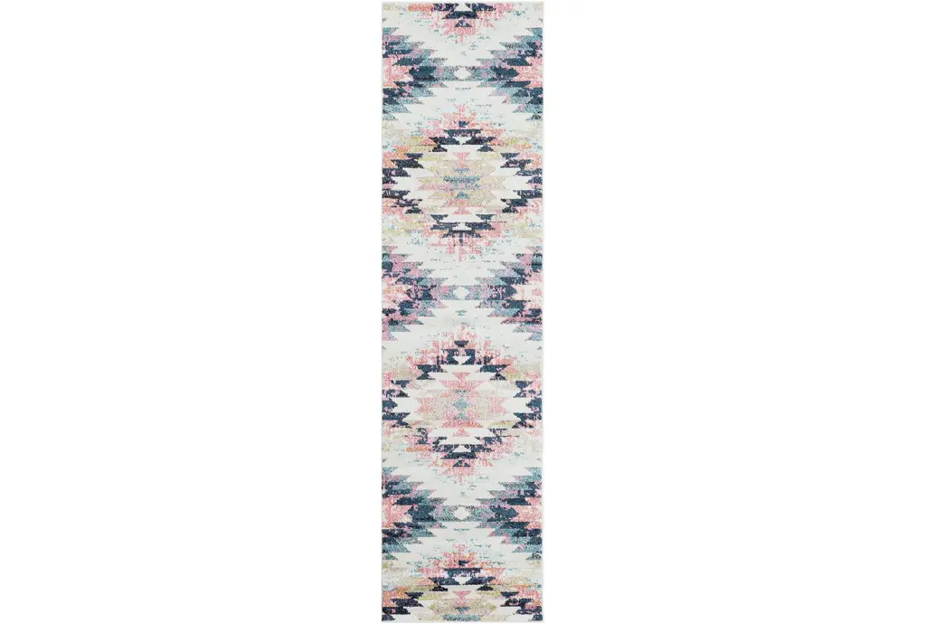 This 2'3"X8' Rug in Zooey Southwest Pink is a flat woven chenille rug made of durable polyester material with a non-skid backing. Its rustic boho style features a gorgeous pink and blush color palette that will add a touch of warmth and charm to any room.