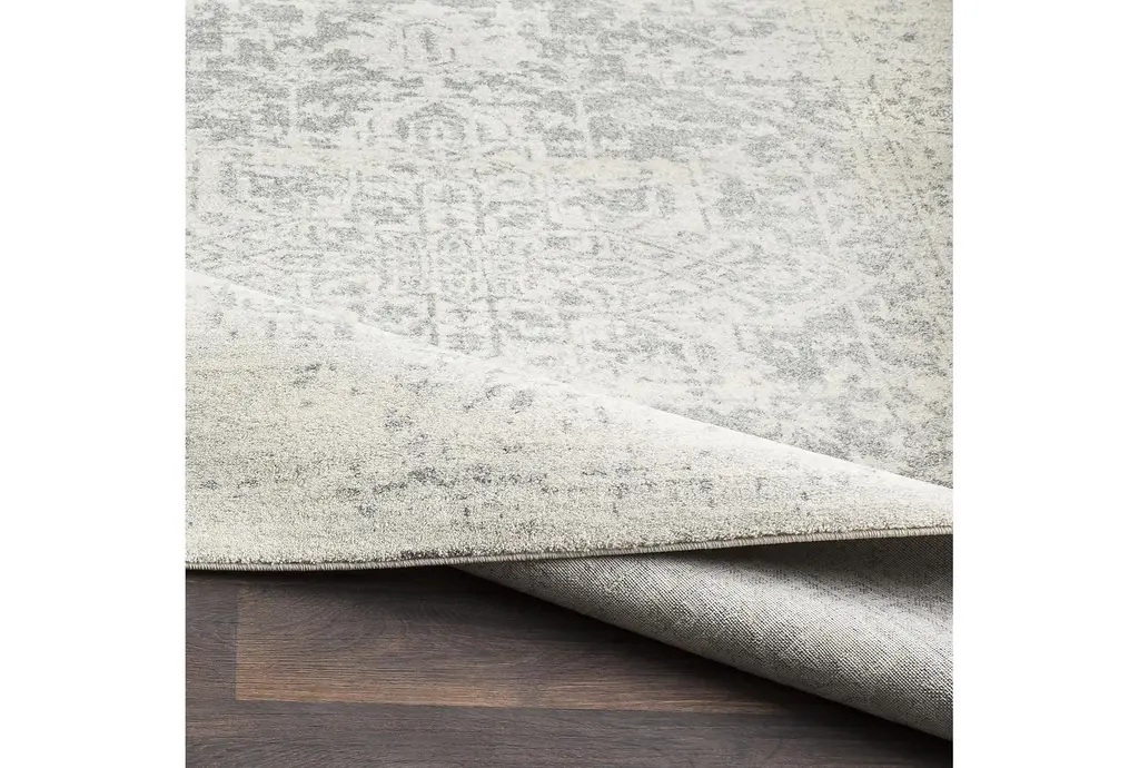 2'6"x12' Fiber Rug-Traditional Soft Greys | Abstract | Low Pile | Long | Rectangle By Surya