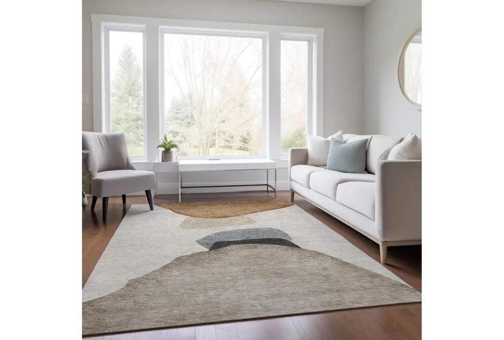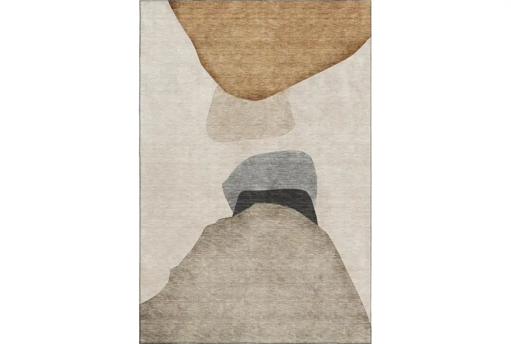 2'6"x3'10" Rug-Modern Modern Rocks Washable Taupe & Cognac | Uv Resistant | Performance | Rectangle | Abstract | Low Pile