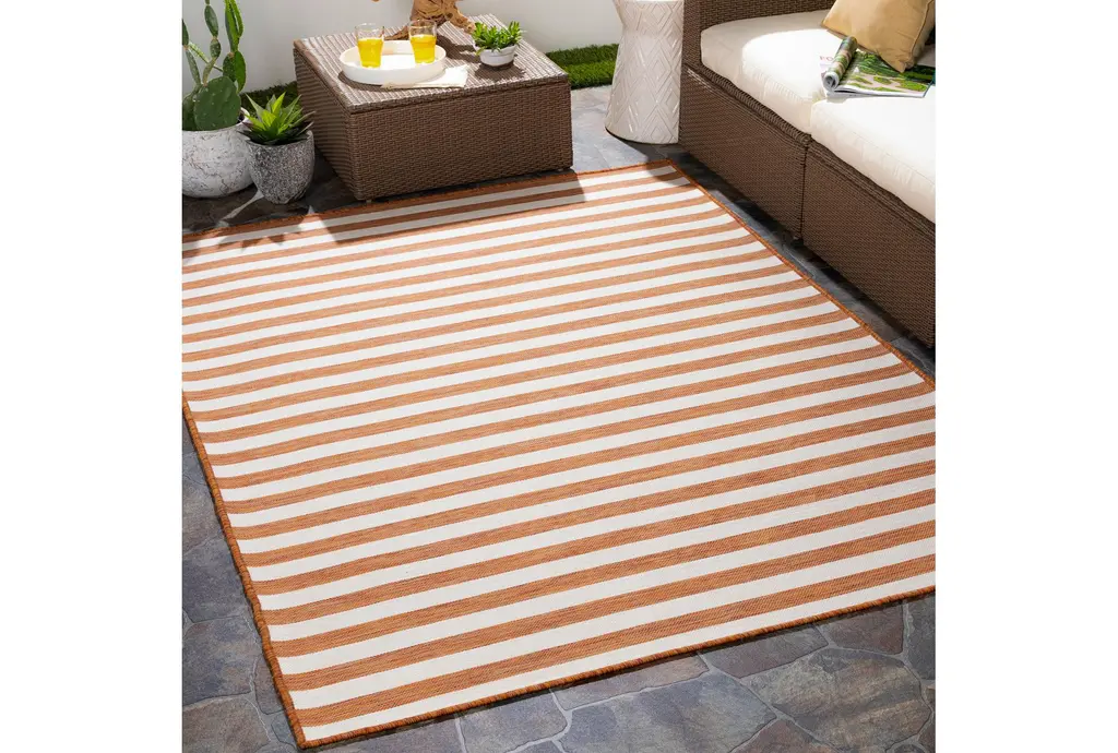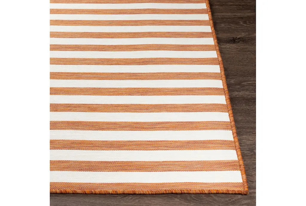2'6"x5' Fiber Indoor/outdoor Rug-Orange & Cream Thin Stripe | Uv Resistant | High Traffic | Low Pile | Rectangle By Surya