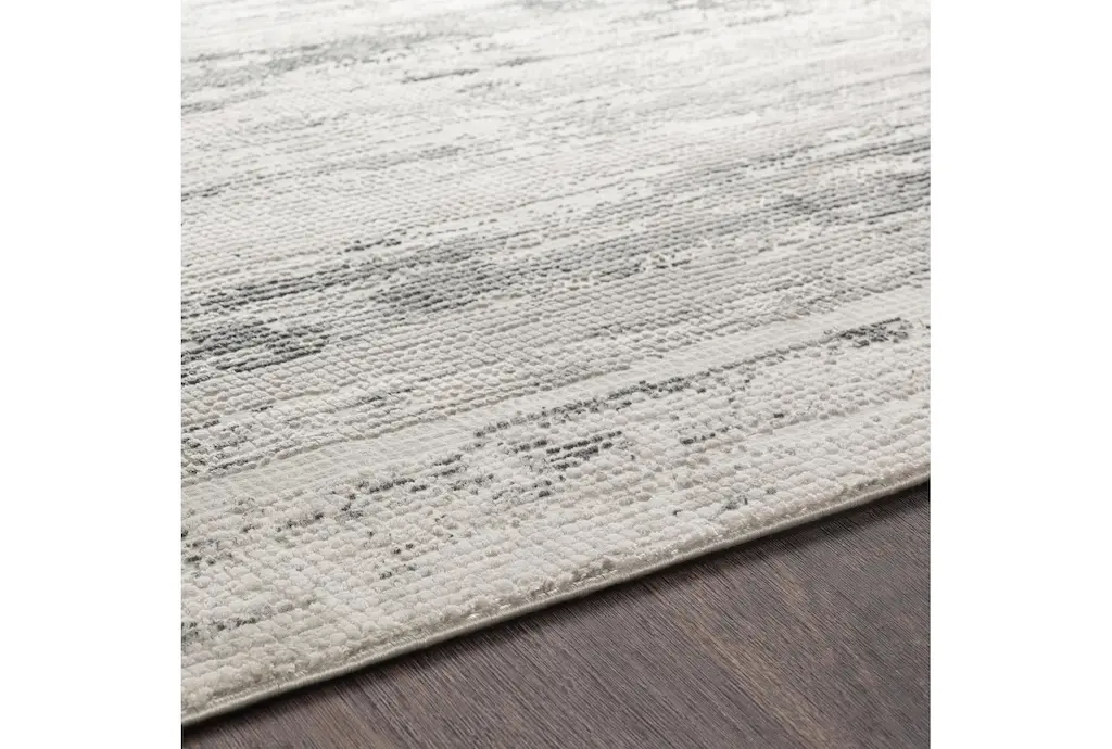 Enhance your indoor living space with the 2'6"X5' Fiber Rug-Modern Shades Of Grey Waterfall by Surya. This low pile, rectangular rug features a gradient design with medium grey, charcoal, light grey, and white tones. Made from a blend of 70% viscose and 30% polyester, it offers a soft and durable surface perfect for high-traffic areas.