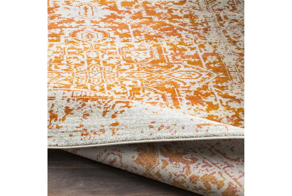 2'6"x7'3" Fiber Rug-Ivete Traditional Antique Medallion Orange | Low Pile | Rectangle By Surya | Botanical