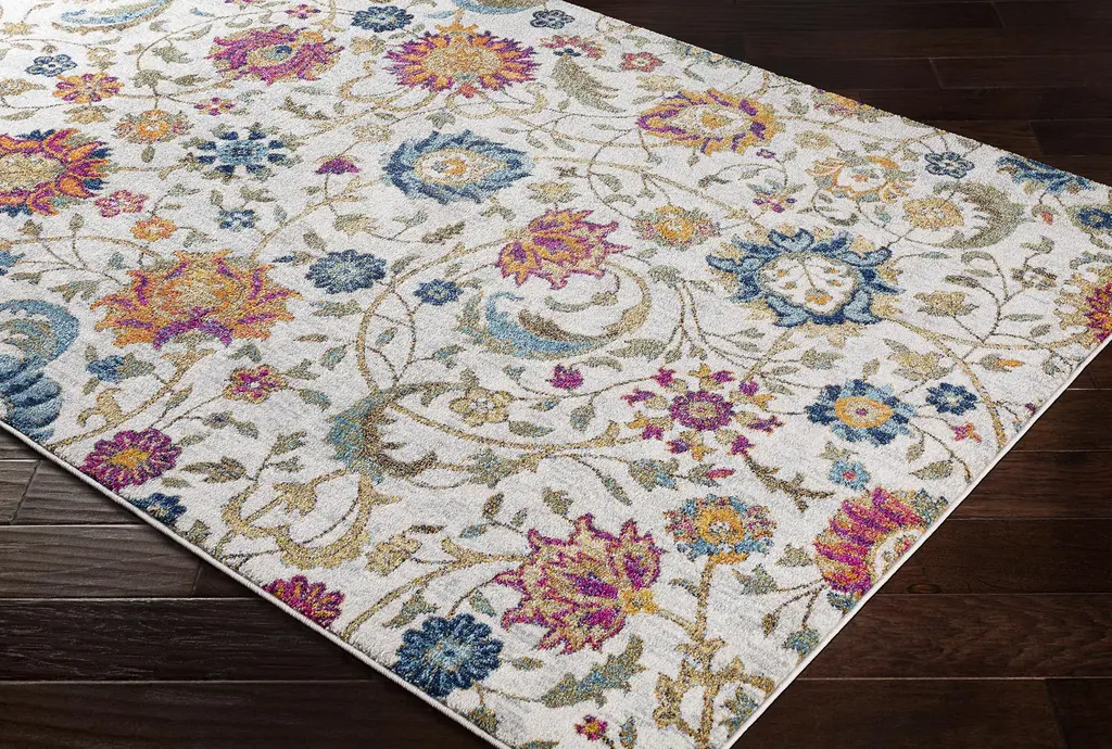 2'6"x7'3" Fiber Rug-Modern Traditional Multicolor | Floral | Low Pile | Rectangle By Surya