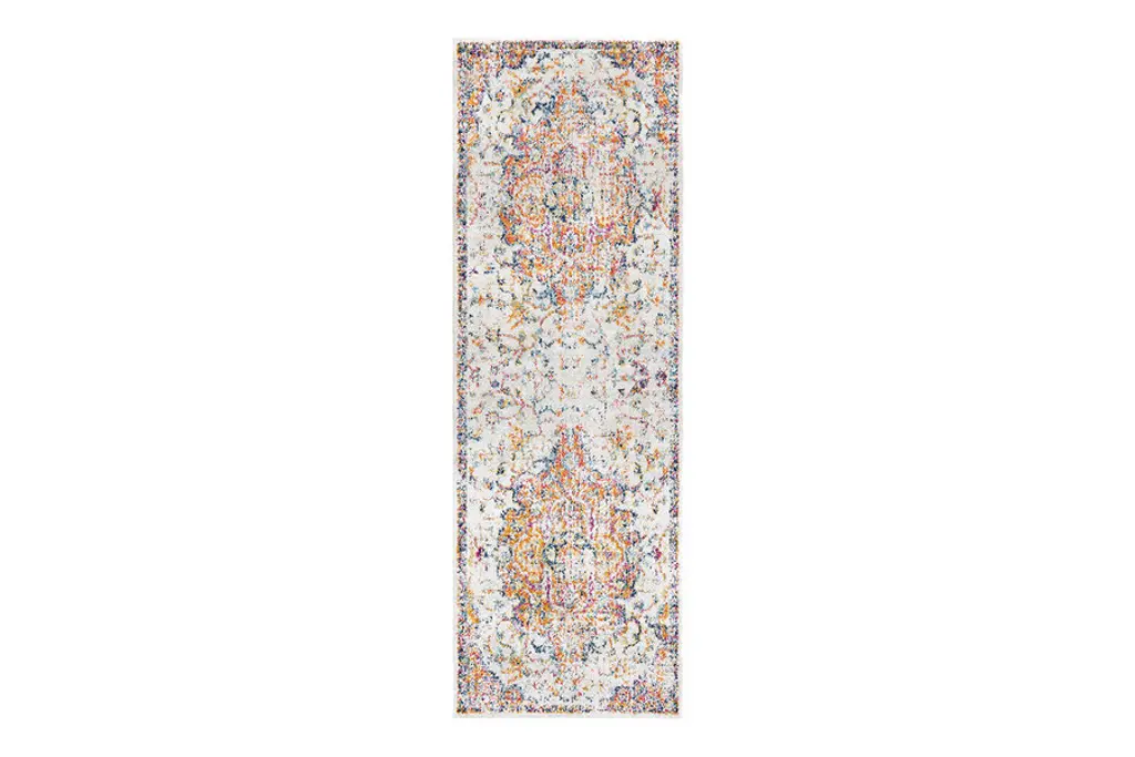 Experience the perfect blend of tradition and modernity with the 2'6"x7'3" Fiber Rug in Traditional Blue and Multicolor. This low pile rug is designed to add a touch of warmth and color to your hallway or any indoor space. Its abstract pattern and rectangle shape make it a versatile and stylish addition to your home.
