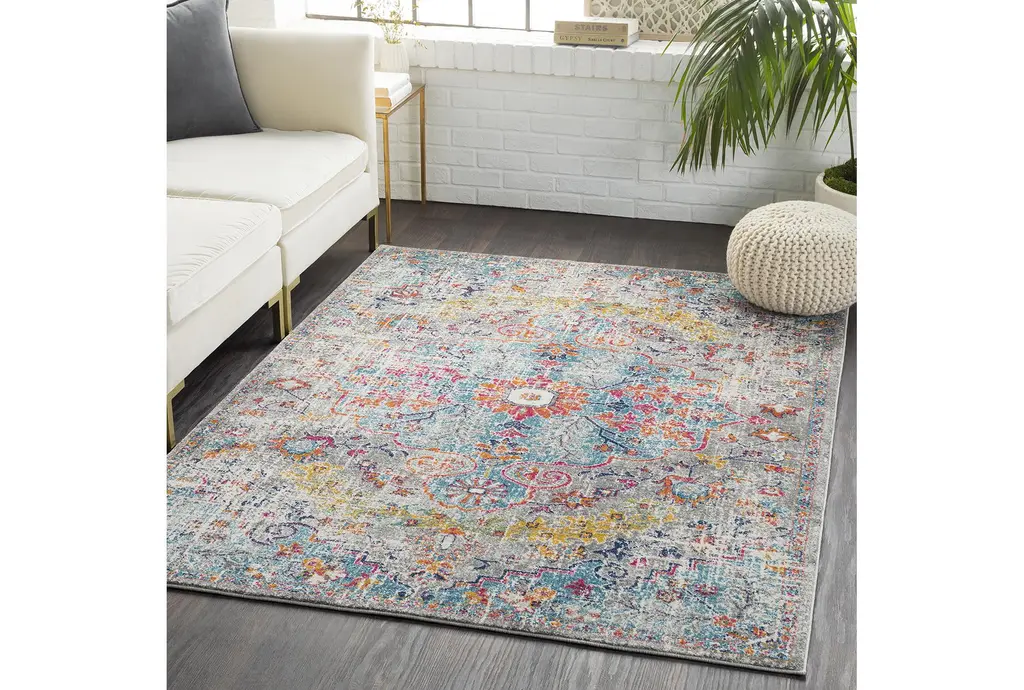 2'6"x7'3" Fiber Rug- Traditional Blue / Multicolor | Low Pile | Abstract | Rectangle By Surya