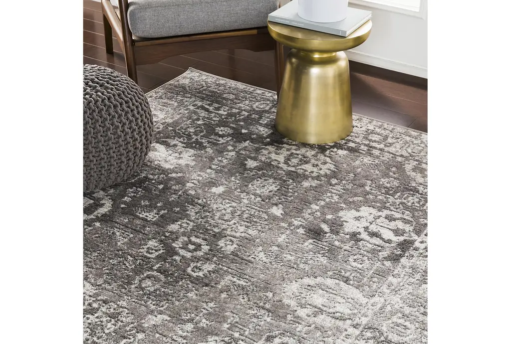 2'6"x7'3" Fiber Rug-Traditional Grey | Low Pile | Rectangle By Surya